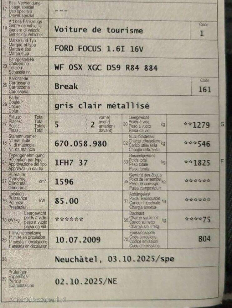 | Typ | Focus 1.6i 16V |