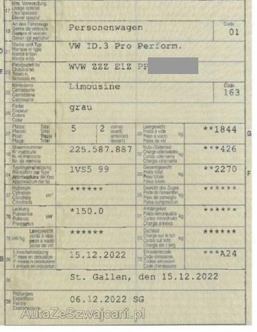 | Condition_and_Equipment | Zustand Fahrzeug muss transportiert werden (Höhe und Breite beachten). Fahrzeug ist NICHT fahrbar. Fahrzeug ist rollbar. Hochvoltfahrzeug Zum Zeitpunkt der Prüfung ging von der Batterie keine Brandgefahr aus. Die geforderten Sicherheitsbestimmungen sind zwingend vom Käufer einzuhalten. --- Links Linke Seite beschädigt. Rechts Rechte Seite beschädigt. Front Front links eingedrückt. Front rechts eingedrückt. Achse Risiko Vorderachse. Risiko Lenkung. Sonstige Schäden Div.Carrosserie Teile sind leicht beschädigt. Hochvoltfahrzeug Keine sichtbaren Schäden am Antriebsakku --- Serienaustattung Airbag Fahrer und Beifahrerseite Regensensor Parkdistanz-Kontrolle vorne + hinten Aussenspiegel elektrisch verstellbar und heizbar Klimaanlage Climatronic Höhenverstellbarer Fahrersitz Multifunktionslenkrad Deaktivierung Beifahrerairbag Servolenkung Mittelarmlehne vorne Isofix Kindersitzverankerung für Rückbank Geteilte Rücksitzlehne Reifenkontrollanzeige RKA Radiosystem Automatische Distanzregelung ACC/ Front Assist Ambientebeleuchtung Tire mobility system Seitenairbags vorne inkl. Kopfairbagsystem Spurhalteassistent Lane Assist Pack 5-Sitzer Verkehrszeichenerkennung Müdigkeitserkennung Keine Gewähr auf die Angaben der Serienausstattungen Digitaler Radioempfang DAB+ Fahrprofilauswahl Ladekabel Basis Mobiltelefon-Vorbereitung Comfort Wärmepumpe Soundaktor Ladekabel Wechselstrom Dach in schwarz LED-Scheinwerfer Wireless Charging Schlüsselloses Startsystem Keyless Start We Connect Wireless App Connect Navigationssystem Discover Pro Streaming & Internet USB-C Anschluss Garantie HV Batterie 8 Jahre/ 160'000 km Pack Infotainment Sonderausstattung Pack Komfort Pack Assistenz |