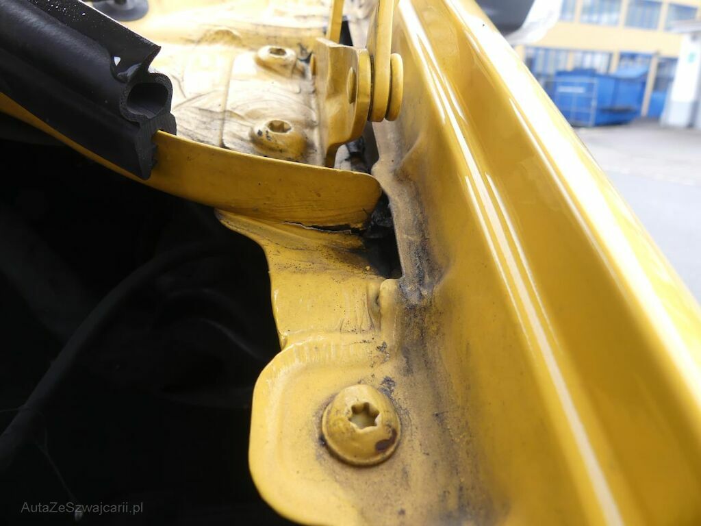 Motorhaube, Kotflügel links und rechts, Frontmaske, Scheinwerfer, Stossstange, Radhausblech rechts, Holmen oben links und rechts, Luftansaugkasten, Verkleidungen und Abdeckungen.