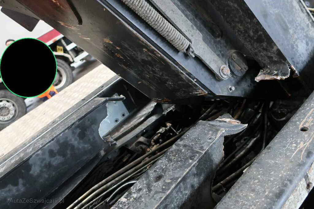 Arm von Abrollkipper, Befestigungspunkte Arm Abrollkipper und Hydraulikzylinder stark beschädigt