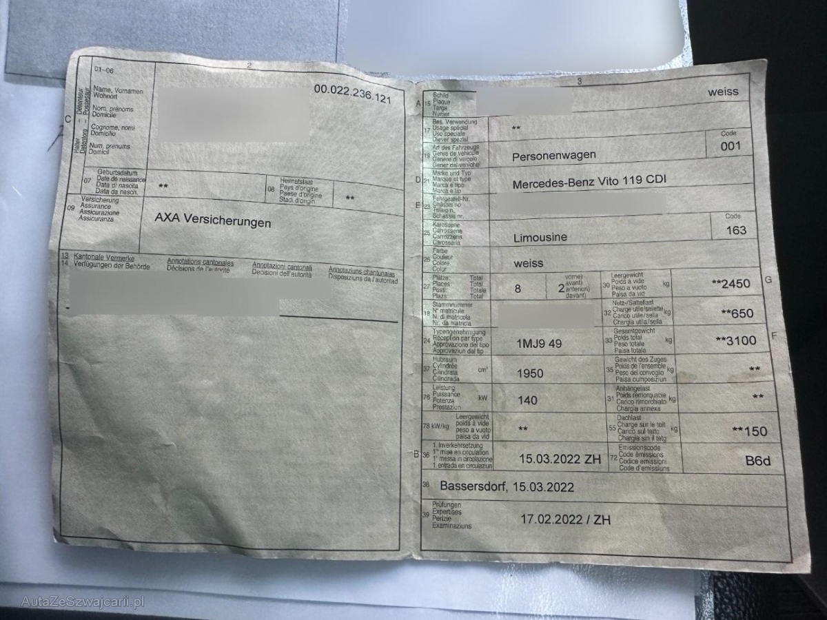 | Fahrzeugausweis | Vorhanden |
