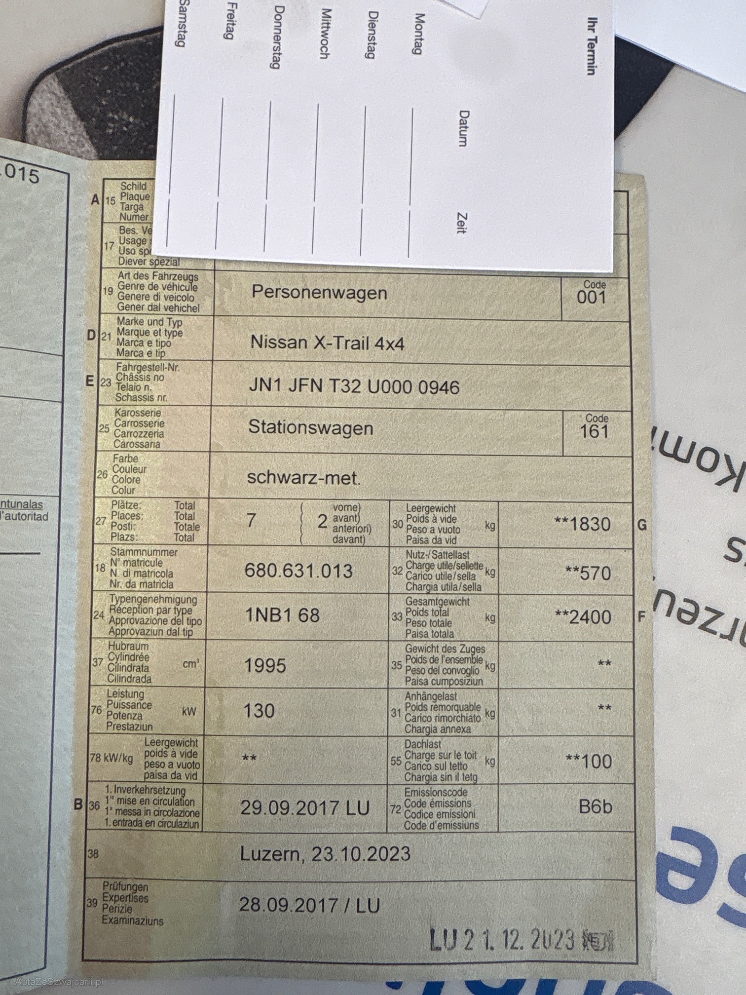 | Kommentar | Auto wurde technisch nicht abschliessend geprüft Ist aber ohne bekannte Probleme Fährt einwandfrei |