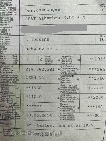 | Condition_and_Equipment | Zustand Fahrzeug ist rollbar. Bereifung Fahrzeug wird mit Winterräder abgegeben. Schlüssel Nur ein Schlüssel vorhanden. --- Front Front eingedrückt. Frontblech/Maskenblech eingedrückt. Fahrzeugvorbau verschoben. Motor Alle Kühler vorne sind eingedrückt. Innenraum Armaturenbrett ist beschädigt. Gurtstraffer ausgelöst. Gurtstraffer vorne ausgelöst. Gurtstraffer hinten ausgelöst. Sonstige Schäden Div.Carrosserie Teile sind leicht beschädigt. --- Serienaustattung Airbag Fahrer und Beifahrerseite Elektrische Fensterheber vorne + hinten Tempomat ABS Antiblockiersystem Sportfahrwerk ESP Elektronisches Stabilitätsprogramm Zentralverriegelung mit Fernbedienung Kopfairbag vorne und hinten Reifendruck-Kontrollsystem RDK Deaktivierung Beifahrerairbag Schubladen unter den Vordersitzen Fussmatten vorne und hinten Aussenspiegel elektrisch verstellbar/ heizbar und anklappbar Bremsassistent EBA Lenkrad-Wippenschaltung Kindersitz-Vorbereitung Isofix Sonnenstoren 2. Reihe Lenksäule mit Höhen- und Längseinstellung Leichtmetallfelgen 17" Mittelarmlehne vorne mit Staufach Seitenairbags vorne Multifunktions-Lederlenkrad Regen- und Lichtsensor Radio/ CD/ MP3 Dachreling silber Servolenkung geschwindigkeitsabhängig Beifahrer Rücklehne umklappbar Knieairbag Fahrer Dieselpartikelfilter Vordersitze höhenverstellbar Abgedunkelte Scheiben ab B-Säule Klapptische an den Rücklehnen der Vordersitze Nebelscheinwerfer mit Corner Funktion Multi-Informationsdisplay/ Bordcomputer Anschluss USB und AUX Start + Stopp Funktion Bluetooth Freisprecheinrichtung 3 Einzelsitze in der 2. Reihe verschiebbar/umklappbar Klimaanlage Climatronic 3-Zonen Keine Gewähr auf die Angaben der Serienausstattungen Seat Media System Plus DAB+ Digital Audio Broadcast Müdigkeitserkennung Sonderausstattung Metallic-Lackierung Keyless Schliess- und Startsystem Pack Winter Pack Technik 2 Sonstige Ausstattung und Zubehör Anhängerkupplung |