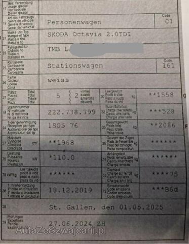 | Condition_and_Equipment | Zustand Fahrzeug muss transportiert werden (Höhe und Breite beachten). Fahrzeug ist fahrbar. --- Rechts Rechte Seite beschädigt. Achse Risiko Vorderachse. Risiko Lenkung. Innenraum Gurtstraffer ausgelöst. Sonstige Schäden Div.Carrosserie Teile sind leicht beschädigt. --- Serienaustattung Airbag Fahrer und Beifahrerseite Elektrische Fensterheber vorne Aussenspiegel elektrisch verstellbar und heizbar ASR Antriebsschlupfregelung ABS Antiblockiersystem Heizbare Scheibenwaschdüsen Reifendruck-Kontrollsystem RDK Deaktivierung Beifahrerairbag EBV Elektronische Bremskraftverteilung Stabilitätskontrolle 8 Lautsprecher Aussenspiegel in Wagenfarbe Isofix-Vorbereitung für 2 Kindersitze hinten Seitenairbags vorne Dachreling schwarz Nebelscheinwerfer vorne Knieairbag Fahrer Dieselpartikelfilter Multifunktionslenkrad für Radio und Telefon Brillenfach Klimaanlage manuell Stahlfelgen 16" Vordersitze höhenverstellbar mit Lendenwirbelstützen Geschwindigkeitsregelanlage Kopfairbags Anschluss USB und AUX Multifunktionslenkrad für Radio/ Telefon/ DSG Rücksitzbank und Lehne geteilt umklappbar/ Mittelarmlehne Hill Hold Control Start + Stopp Automatik Elektronische Differentialsperre XDS Multi-Informationsdisplay Maxi-DOT Keine Gewähr auf die Angaben der Serienausstattungen DAB+ Digital Audio Broadcast Komplette Telefonvorbereitung Taschenlampe Radio/ SD/ MP3/ USB/ Aux Swing Sonderausstattung Park-Distanz-Sensor vorne + hinten SmartLink |