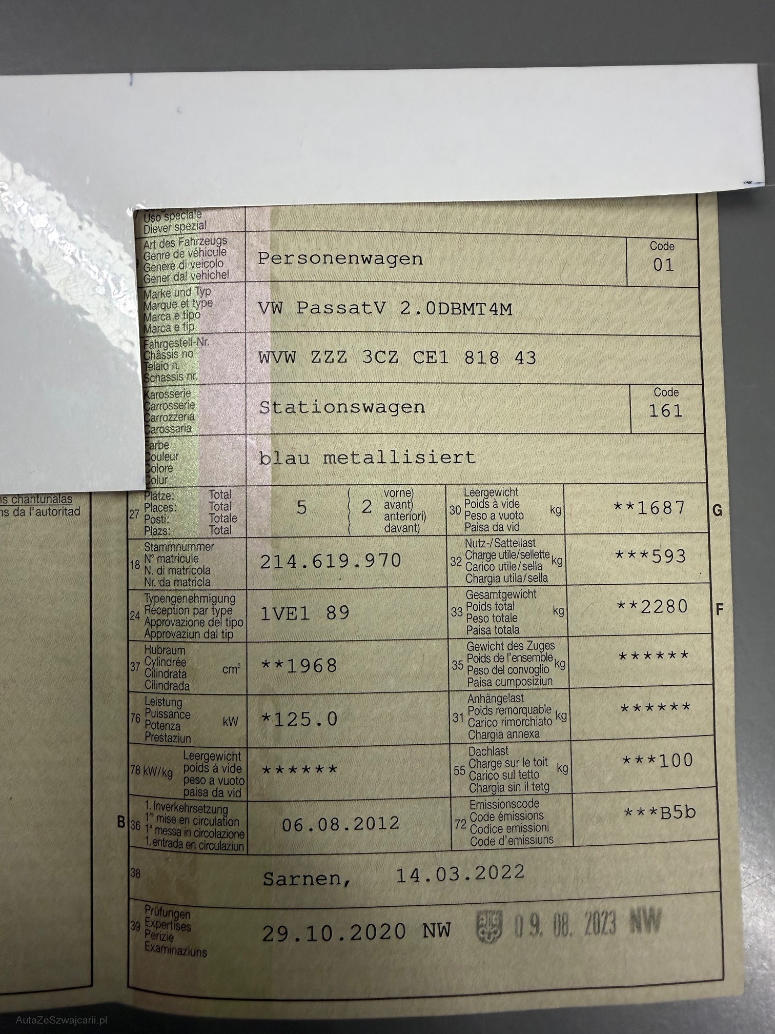 | Kommentar | Diverse Kratzer und kleiner Schaden vorne rechts. (Bild). Keine technische Prüfung. Ab Platz ohne Garantie. Jede Gewährleistung soweit nach Gesetz möglich wird wegbedungen, insbesondere Wandelung und Minderung. Fahrzeug muss nach Kauf innerhalb 5 Arbeitstagen abgeholt werden. Standplatzgebühren 20.-/Tag |