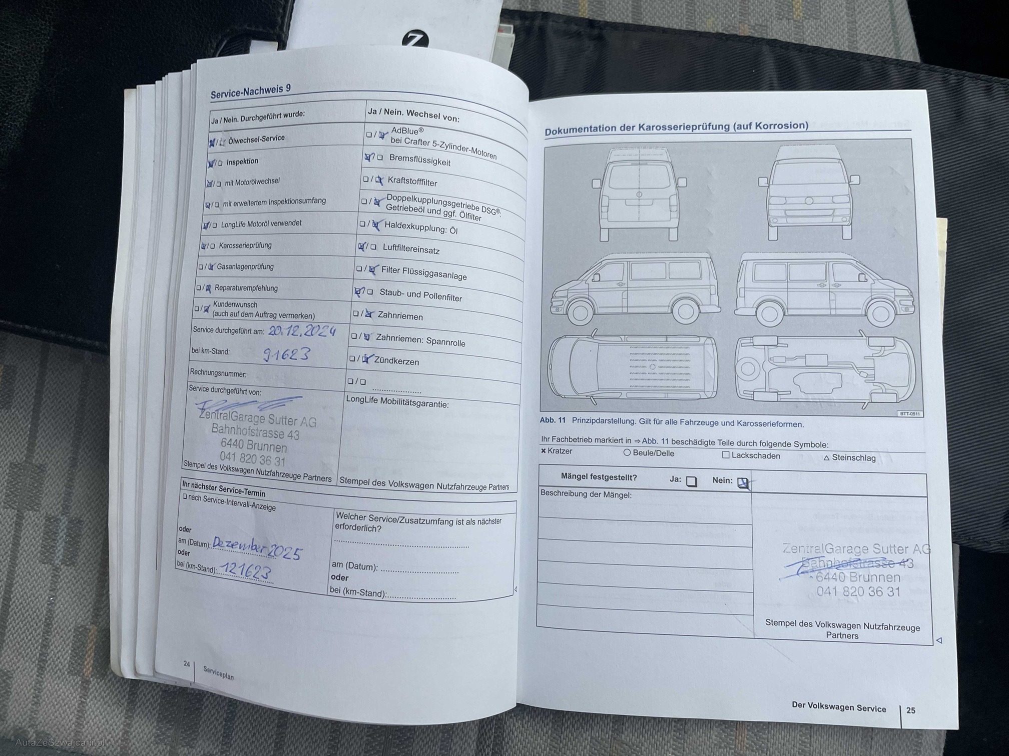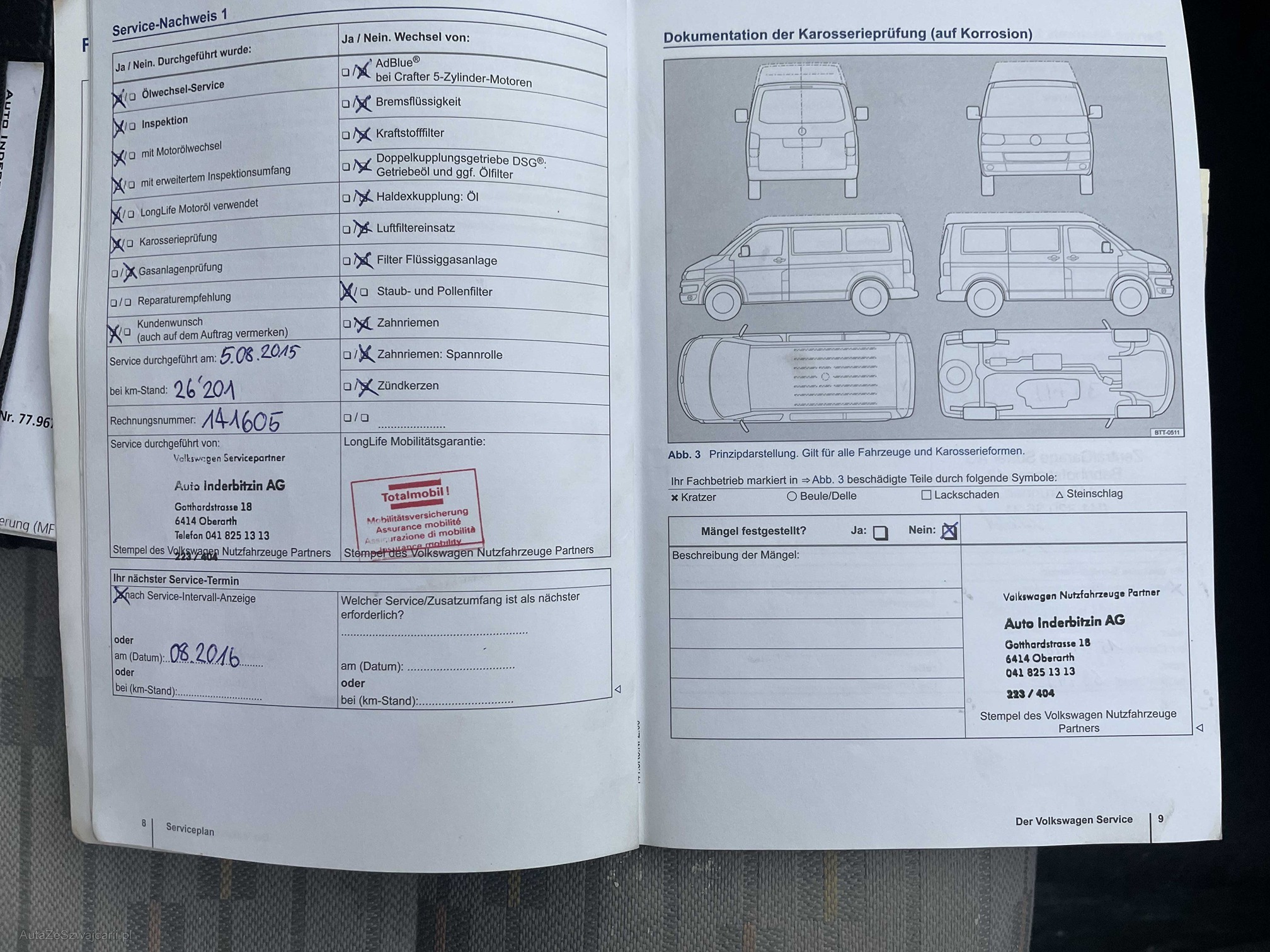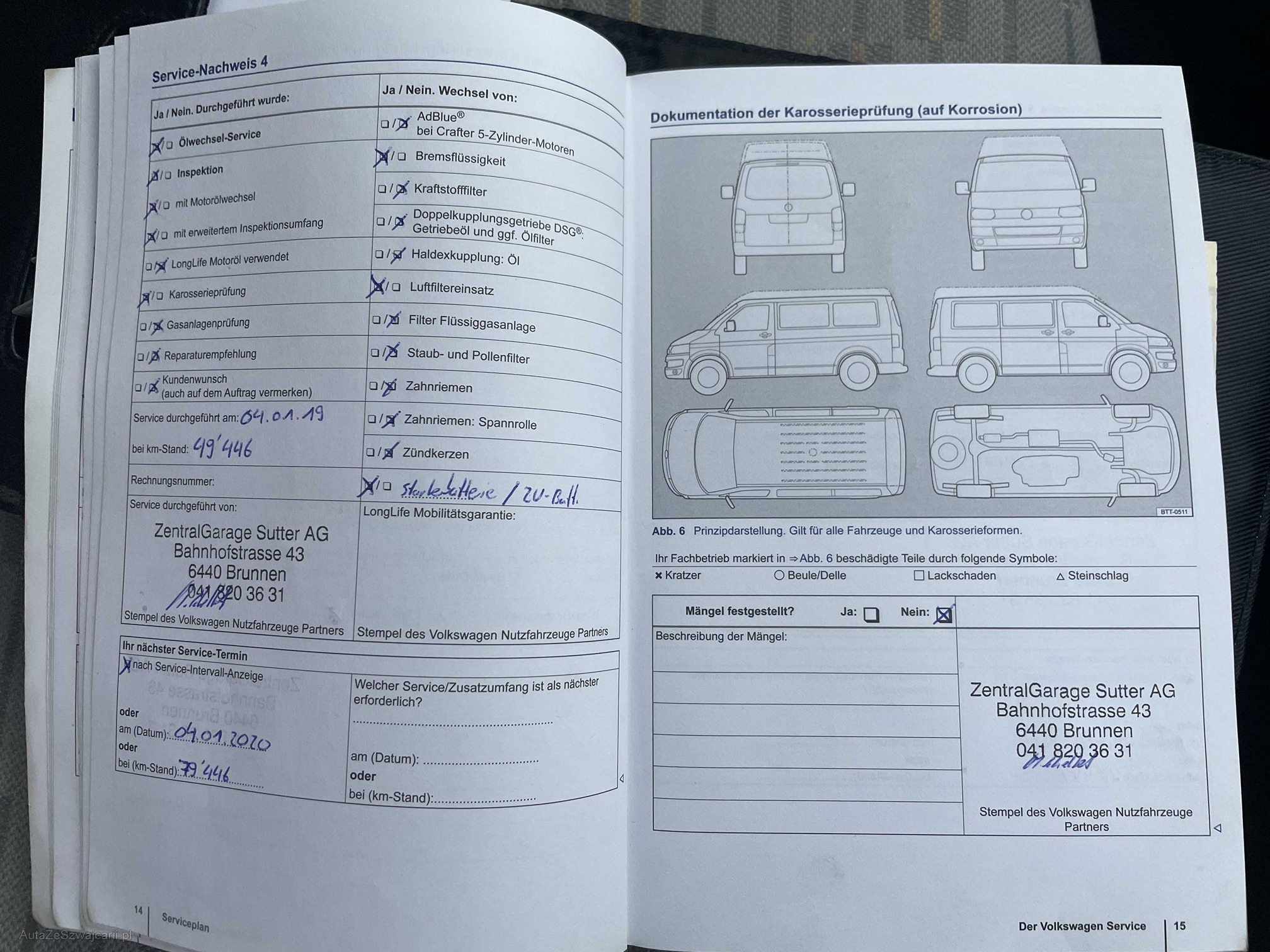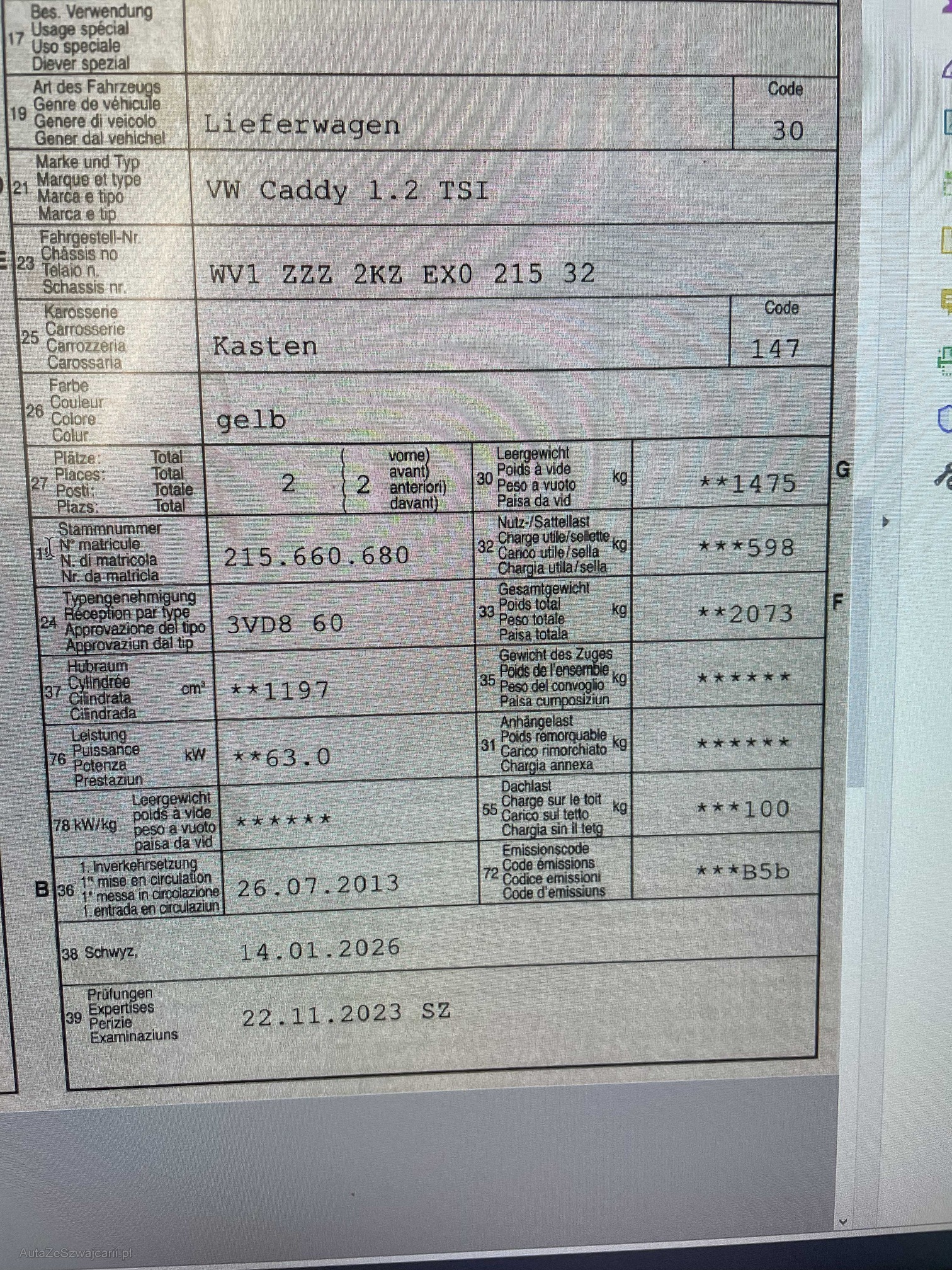| Kommentar | Loch im Stossfänger hinten links Zustand Bremsen vorne und hinten ca. 50% Profiltiefe Winterbereifung: Vorne: 6mm, hinten: 5.5mm Zustand innen: Siehe Fotos Zustand aussen: siehe Fotos ------Diese Auflistung ist ohne Gewähr auf Vollständigkeit------------- |
