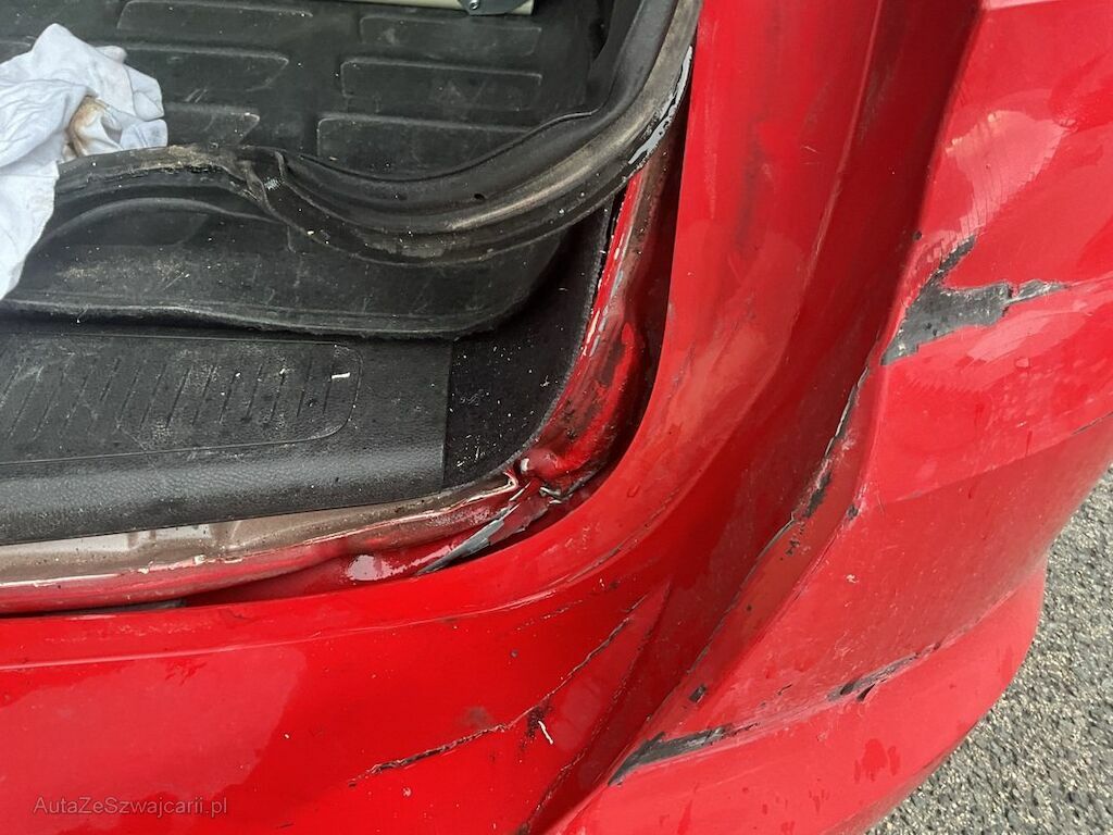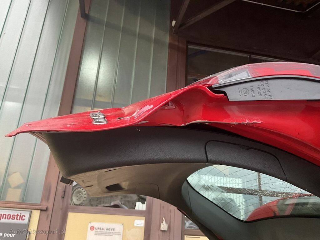 Pare-chocs arrière, hayon et tôle arrière endommagés.