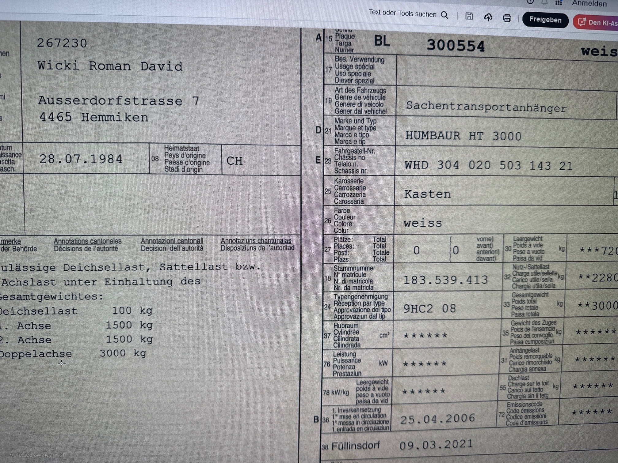 | Kommentar | SIE BIETEN AUF EINEN SACHENTRANSPORTER DER MARKE HUMBAUR TYP HT 3000 Details bitte dem Ausweis entnehmen. Achtung, Leergewicht stimmt nicht. ist höher. Mit Kofferaufbau und Holzregalen um ca 1500KG! INHALT GEMÄSS LETZTEM BILD GEHÖRT NICHT ZUM ANGEBOT. DIENT LEDIGLICH DAZU UM ZU ZEIGEN FÜR WAS DER ANHÄNGER GENUTZT WURDE. BESENREIN. RAMPE: ANTIRUTSCHKLEBER. FOLIE VORHANDEN UND WIRD DEM ALLFÄLLIGEN KÄUFER MITGEGEBEN. Zustand: div Beulen, und Schäden. Teils Repariert. So vom aktuellen Besitzer gekauft und seitdem 2x Vorgeführt. zuletzt im Mai 2025 ERSATZRAD VORHANDEN. RÄDER IM CA 22 ERSETZT INKL. ERSATZRAD. Der Anhänger kann gerne bei uns besichtigt werden. KM IST EINE ANNAHME. NATÜRLICH OHNE NACHWEIS ODER VERBINDLICHKEIT Kauf ab Platz ohne Garantie. Hinweis zum Fahrzeugverkauf Es wurde keinem Werkstatttest durchgeführt. Eine Überprüfung sämtlicher Funktionen hat nicht stattgefunden. Für sichtbare sowie nicht sichtbare Mängel wird keinerlei Haftung übernommen. Der Verkauf erfolgt ab Platz, ohne Garantie oder Gewährleistung. Jegliche Ansprüche auf Wandelung oder Minderung sind ausdrücklich ausgeschlossen. Nach Zuschlag bzw. Kaufabschluss sind Nachverhandlungen ausgeschlossen, auch im Falle nachträglich entdeckter und nicht deklarierter Mängel. Das Risiko trägt vollumfänglich der Käufer. |