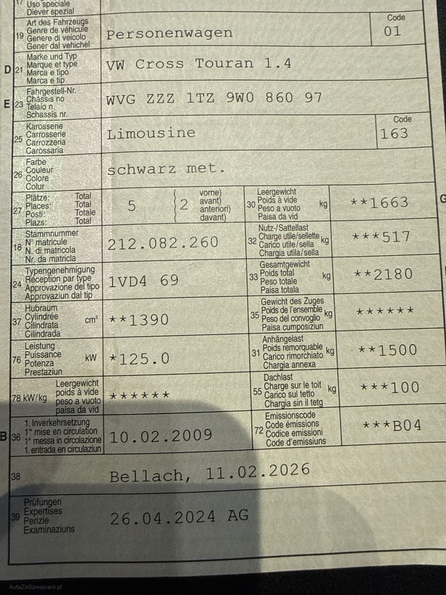 | VIN | WVGZZZ1TZ9W086097 |