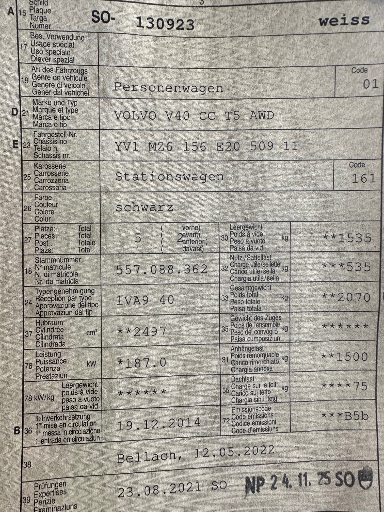| VIN | YV1MZ6156E2050911 |