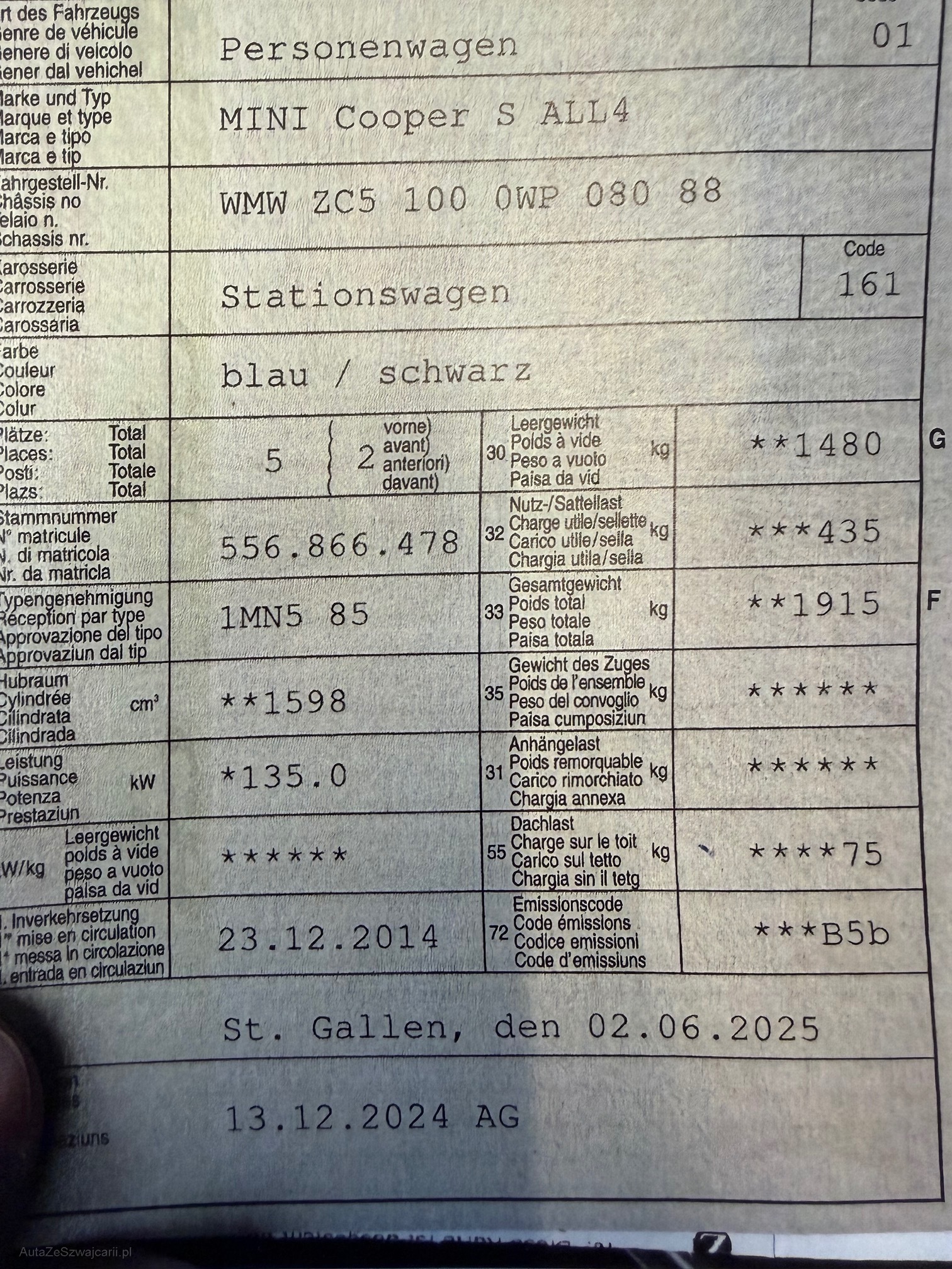 | Kommentar | Gepflegter Countryman , Sommerräder 18" Keskin , Winterräder, alle Reifen sehr gut, Auto fährt einwandfrei, wir hatten das Auto auf dem Lift und für die MFK müsste man die Dichtung vom Ölfiltergehäuse ersetzten oder Motor waschen , der Rest scheint in Ordnung zu sein. Ohne Gewähr. Kleine Kratzer und Steinschläge sind vorhanden aber absolut im Rahmen für dieses Alter. Am Fahrzeug wurde kein Werkstatttest gemacht (für sichtbare oder nicht sichtbare Mängel wird nicht gehaftet). Wir haben nicht alle Funktionen vom Fahrzeug getestet und geprüft. Das Risiko liegt somit vollumfänglich beim Käufer. Nach erhalt des Zuschlags gibt es keine Nachverhandlung, auch wenn nicht deklarierte Mängel zum Vorschein kommen. Ab Platz ohne Garantie oder Gewährleistung, Wandelung und Minderung werden wegbedungen. |