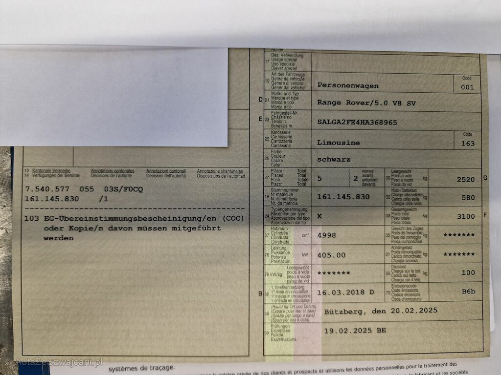 | Typ | Range Rover 5.0 V8 SV |