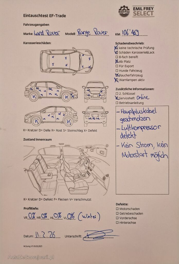 Keine technische Prüfung (Werkstatttest) vorgenommen