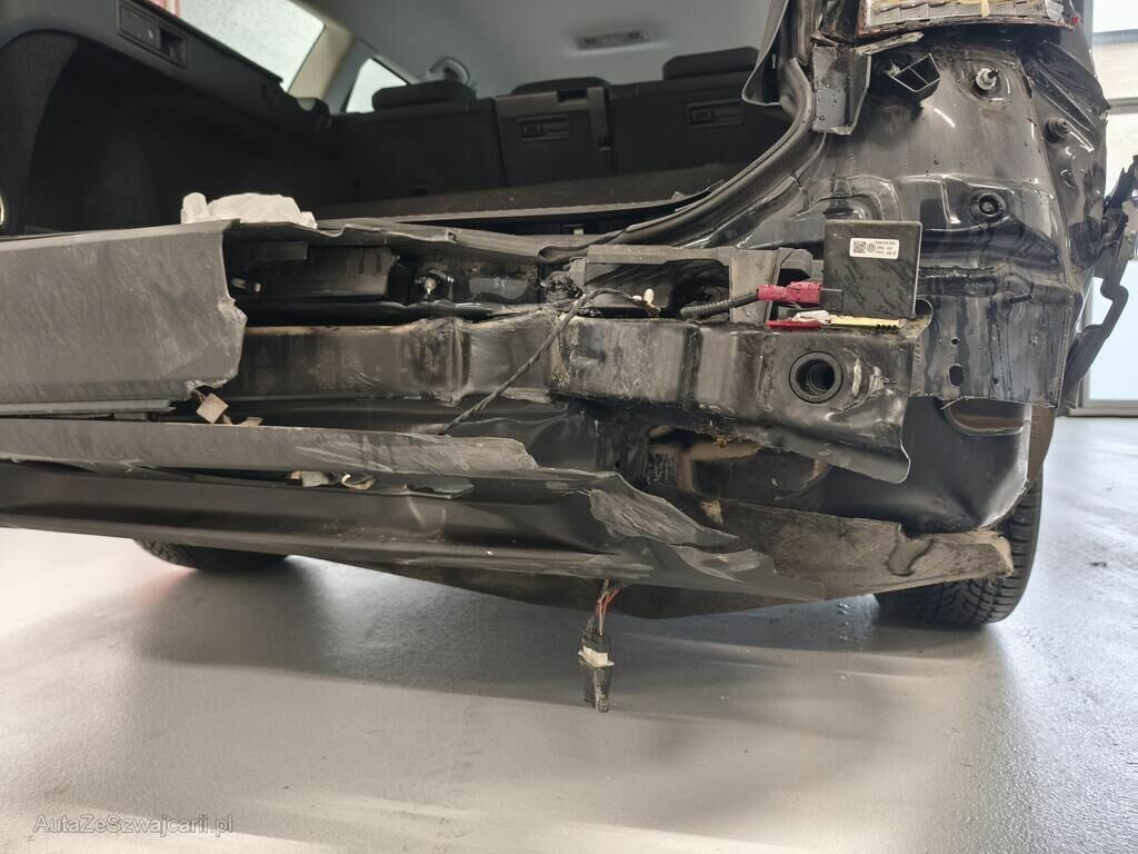 Durch das Ereignis ist das Fahrzeugheck erheblich beschädigt und gestaucht worden. Die Seite rechts inkl. den Anbauteilen ist ebenfalls beschädigt und gestaucht. Das Dach ist im Bereich hinten rechts deformiert und gestaucht. Die Front ist im Bereich links beschädigt.