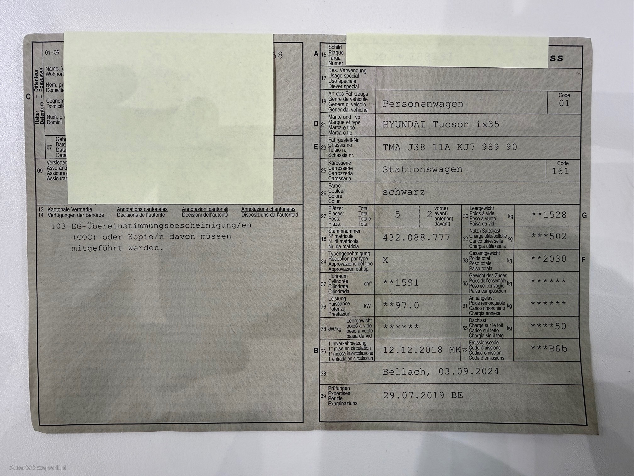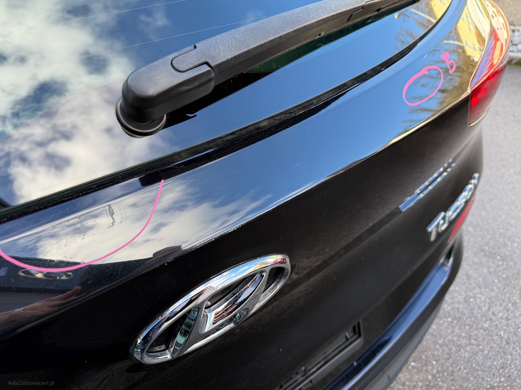 | Kommentar | Direktimport TUCSON aus 1. Hand mit wenig Kilometer, COC vorhanden 8-fach bereift Zustand Carrosserie gemäss Fotos, Fz hat auf Motorhaube und Dach Harzflecken, welche poliert werden können Fz hat einen Motorschaden, keine Kompression auf Zylinder 4 und muss aufgeladen werden Laderaumrollo fehlt |