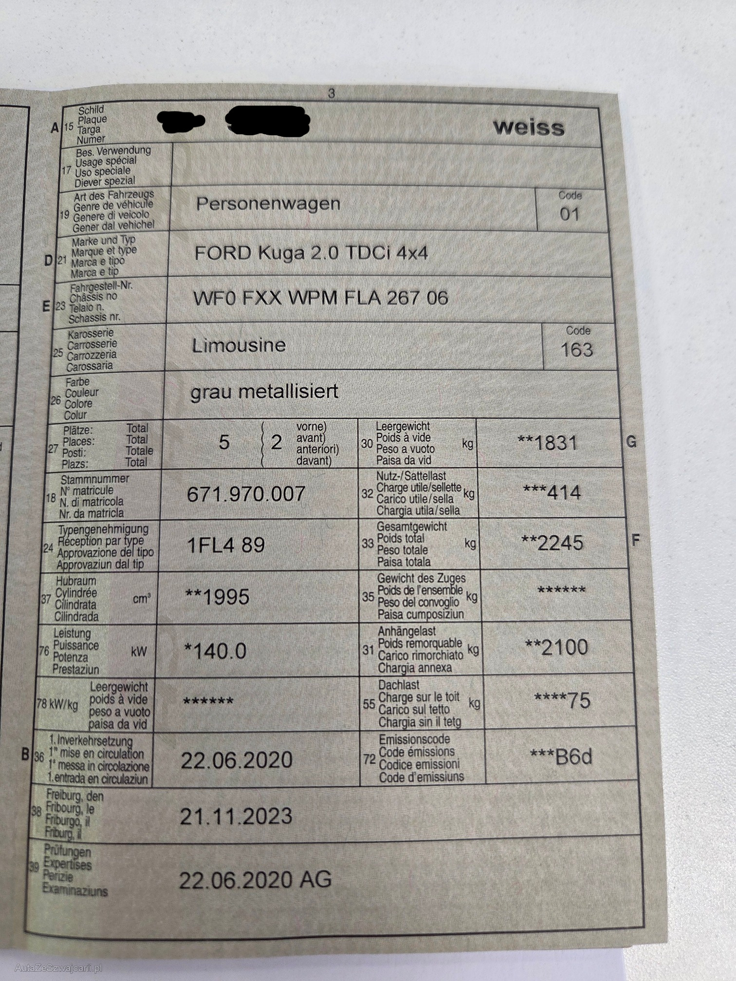 | Kommentar | Sehr schönes und gepflegtes Fahrzeug, Wartungen immer beim Ford Händler durchgeführt, neue Bremsen vorne und hinten im Januar 2026, Anhängerkupplung schwenkbar (Anhängelast 2100kg). |