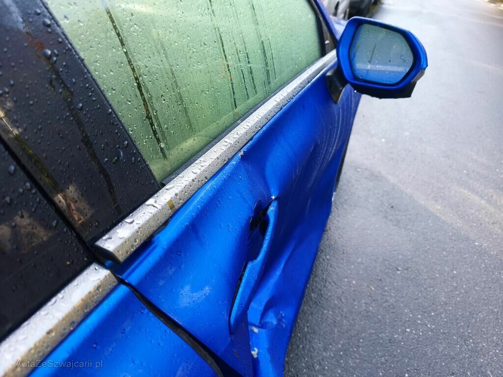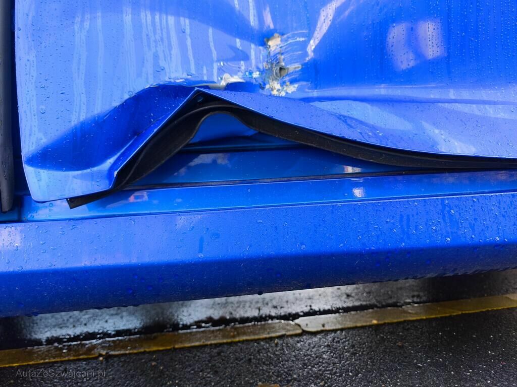 Porte avant droite complète, montant B droite, porte arrière droite, aile arrière droite, doublure intérieure d'aile arrière droite, feux arrière droite, pare-chocs arrière, jupe arrière, jante arrière gauche, réserve sur la géométrie arrière.
