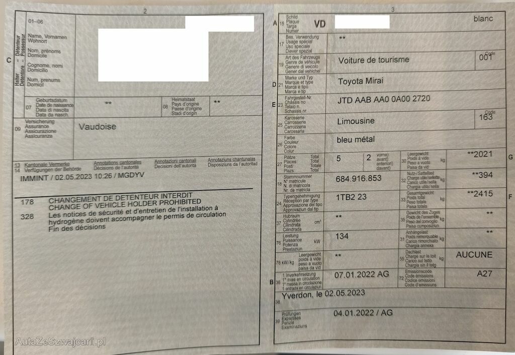 | Typ | Mirai Fuel cell Platinum |