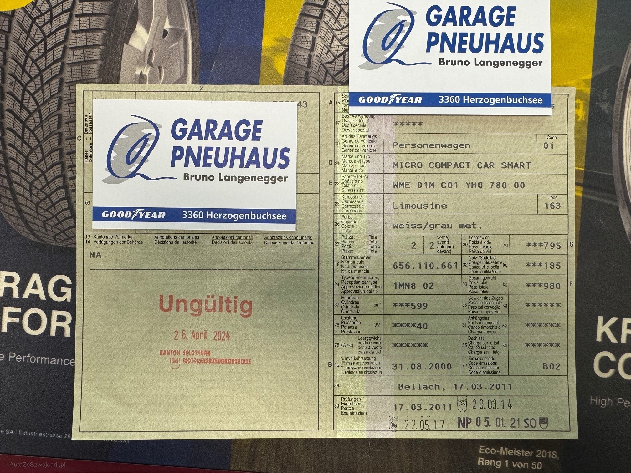 | Kommentar | Unsere Fahrzeuge wurden keiner Prüfung unterzogen, Fahrzeugkauf auf eigenes Risiko ab Platz ohne Nachwährschaft. Nach Zuschlag muss das Auto innerhalb von 5 Arbeitstagen abgeholt werden sonst wird 25.-CHF pro Tag verrechnet!! Bei diesem Fahrzeug wurde kein Werkstatttest durchgeführt. Der Auspuff ist sehr laut hat wahrscheinlich ein Loch. Die Batterie ist schwach sollte ersetzt werden. |