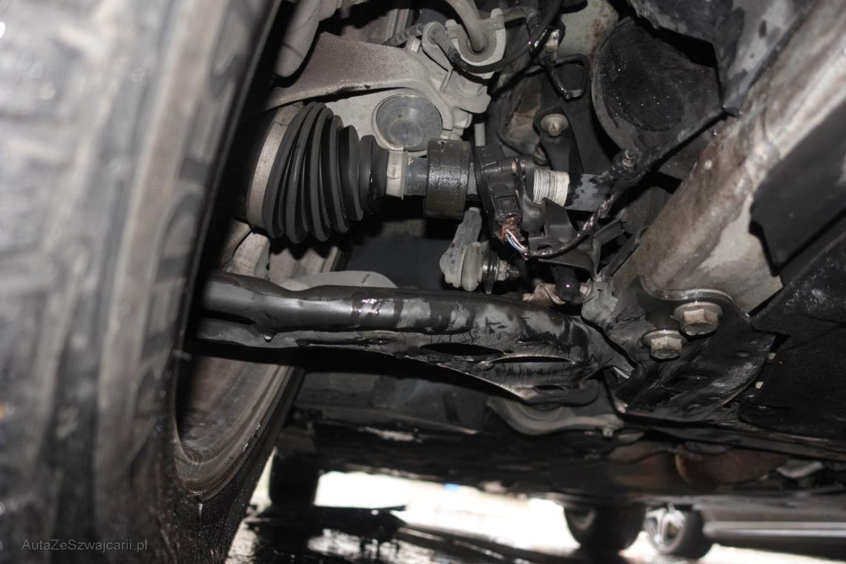 | Schadensbeschreibung | Le véhicule a subi un choc inférieur. ATTENTION : Le véhicule ne démarre pas, batterie faible et verrouillage du capot bloqué. Essieu avant endommagé |