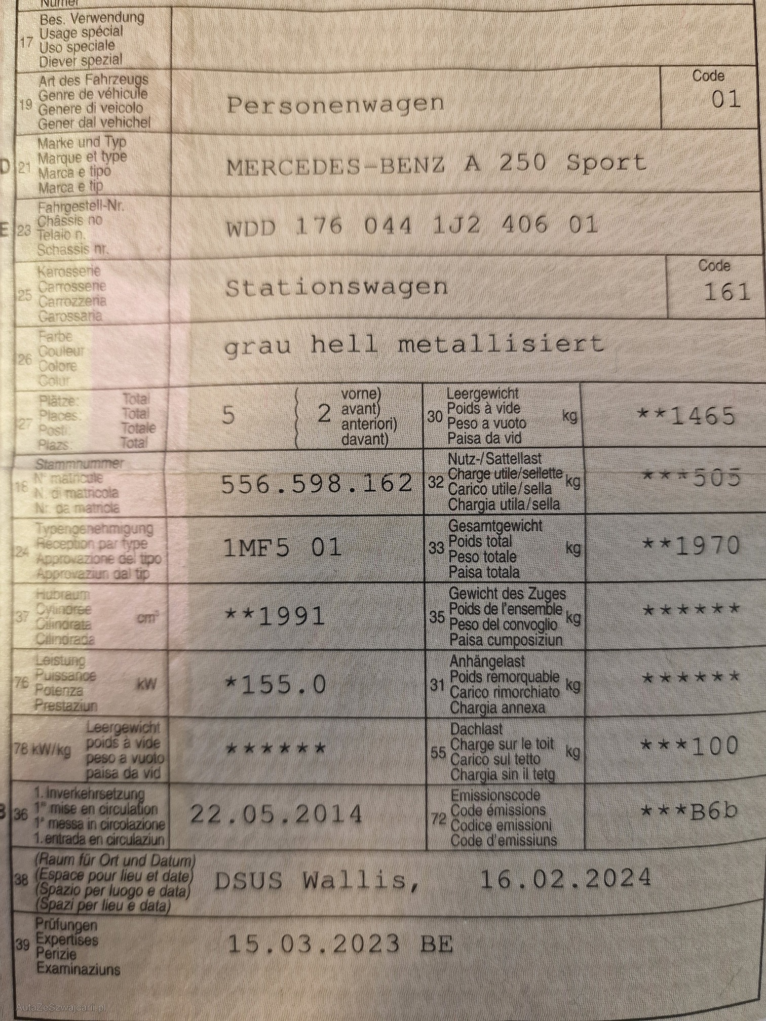 | Kommentar | Jede Gewährleistung, soweit nach Gesetz möglich, wird wegbedungen, insbesondere sind Wandelung und Minderung ausgeschlossen. Bekannte Mängel: - Stecker Batteriepoltrennung - Karosserie & Innenraum gemäss Fotos |