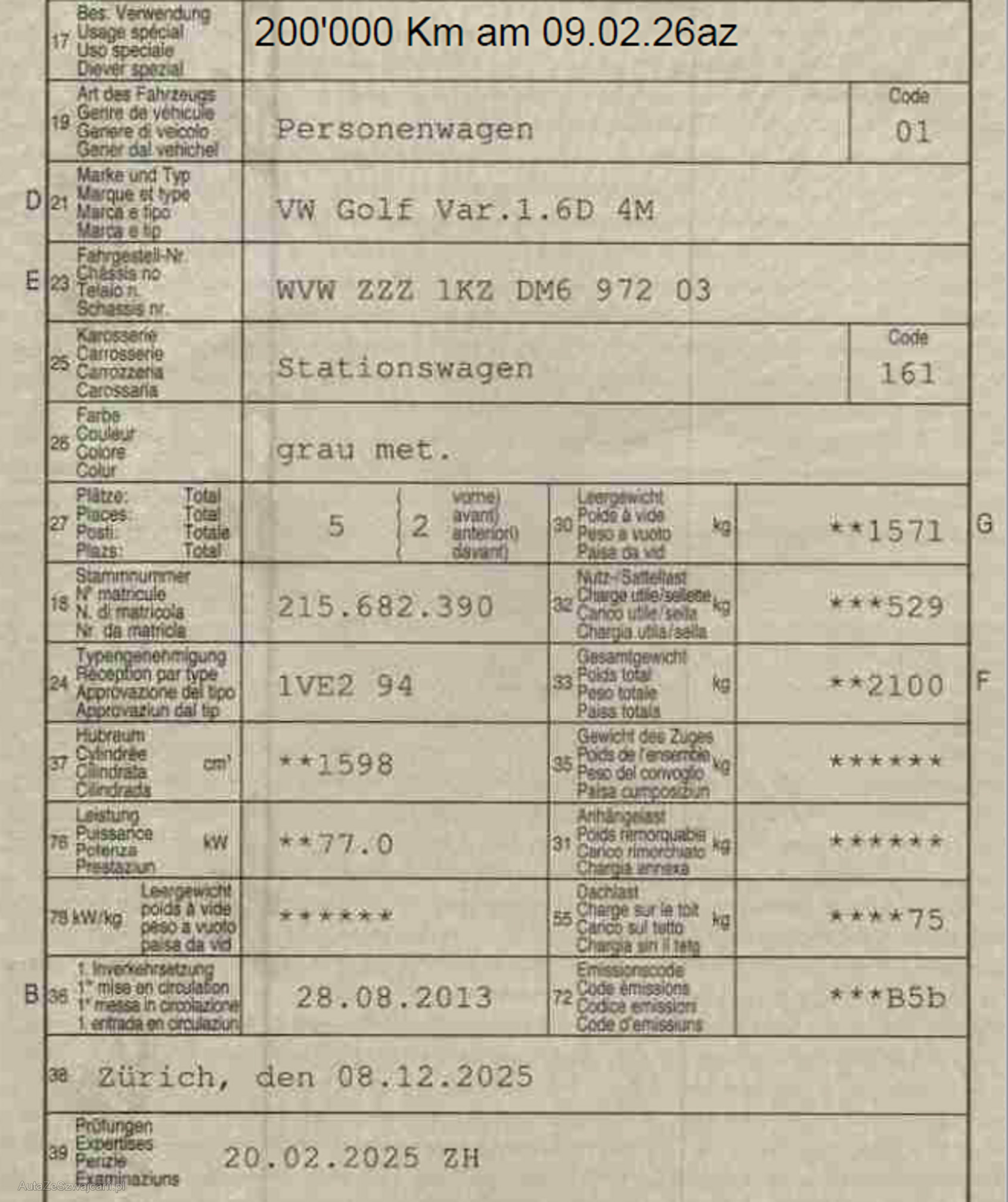 | Zahnriemen gewechselt | No |