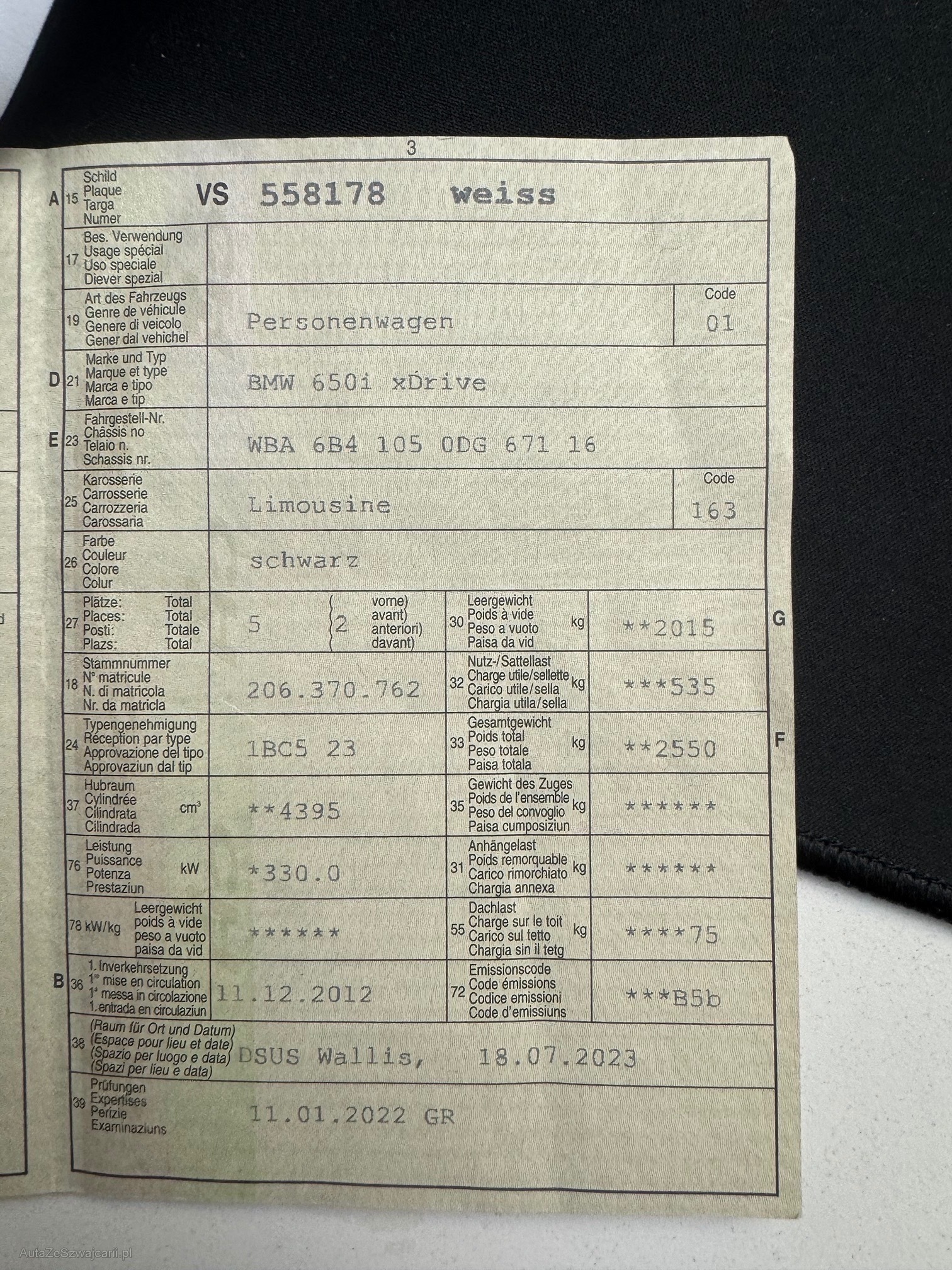 | Kommentar | Wir bieten einen wunderschönen BMW 650i xDrive Gran Coupe. Es wurde gerade ein grosser Service gemacht und die MFK ist frisch diesen Monat. Felgen sind teilweise angefahren. Beiger Innenraum Teppich an gewissen Stellen dreckig. Der rechte Vorderreifen verliert Luft. Technisch ist er in sehr gutem Zustand da alles frisch gemacht wurde. Nur Winterbereifung am Auto. Felgen und Distanzscheiben sind eingetragen und eine Eignungserklärung ist vorhanden. Der Verkauf erfolgt ab Platz, ohne Garantie, ohne Nachwährschaft und ohne Gewährleistung, gekauft wie gesehen. Eine umfassende Prüfung oder Funktionskontrolle der Fahrzeuge findet nicht statt. Für sichtbare sowie nicht sichtbare Mängel wird keinerlei Haftung übernommen. Eine Besichtigung vor der Auktion ist nach Voranmeldung möglich und wird empfohlen. Mit dem Zuschlag gilt der Kauf als endgültig abgeschlossen. Nachverhandlungen, Rücktritt, Wandelung oder Minderung sowie jegliche Ansprüche aufgrund nicht deklarierter Mängel sind ausgeschlossen, soweit gesetzlich zulässig. |