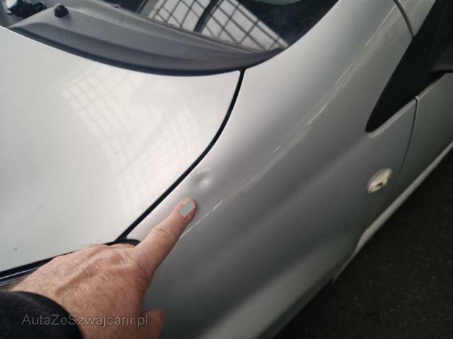 | Condition_and_Equipment | Heck Heck eingedrückt. Heckblech eingedrückt. Kofferboden eingedrückt. Heckklappe eingedrückt. Glas Heckscheibe ist zerbrochen / beschädigt. Sonstige Schäden Div.Carrosserie Teile sind leicht beschädigt. Weitere Beschädigungen Schaden und Ausstattung gemäss beiliegenden Fotos. --- Serienaustattung Airbag Fahrer und Beifahrerseite Elektronische Wegfahrsperre Radio/ CD Servolenkung Lenkrad verstellbar Deaktivierung Beifahrerairbag Stossstangen in Wagenfarbe Fahrerinformationssystem ABS und EBD Elektr. Bremskraftverteilung Rücksitzbank umklappbar Stoffinterieur Fensterheber vorne mechanisch 12 V Steckdose auf Mittelkonsole Aussenspiegel schwarz/ manuell verstellbar Türgriffe aussen/ schwarz Stahlfelgen 14" Keine Gewähr auf die Angaben der Serienausstattungen Sonderausstattung Klimaanlage manuell mit Pollenfilter Metallic-/ Mica Lackierung Ausstattung Klimaanlage Metallic-Lackierung |