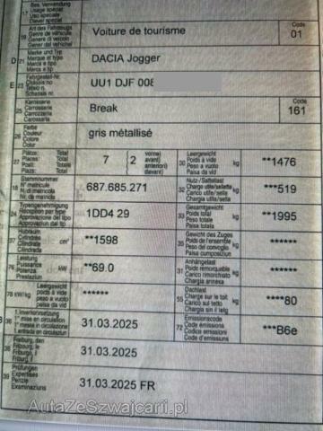 | Condition_and_Equipment | Zustand Fahrzeug muss transportiert werden (Höhe und Breite beachten). Fahrzeug ist NICHT fahrbar. Fahrzeug ist NICHT rollbar. Bereifung Fahrzeug wird mit Winterräder abgegeben. --- Rechts Rechte Seite beschädigt. Front Front rechts eingedrückt. Achse Aufhängungsteile vorne rechts beschädigt. Lenkgetriebe ist beschädigt. Innenraum Armaturenbrett ist beschädigt. Gurtstraffer vorne ausgelöst. Glas Windschutzscheibe ist gerissen. Sonstige Schäden Div.Carrosserie Teile sind leicht beschädigt. --- Serienaustattung Airbag Fahrer und Beifahrerseite Elektrische Fensterheber vorne + hinten Aussenspiegel elektrisch verstellbar und heizbar ABS Antiblockiersystem Nebelscheinwerfer Zentralverriegelung mit Fernbedienung Lenkrad verstellbar Regensensor Reifendruck-Kontrollsystem RDK Deaktivierung Beifahrerairbag Windowbags vorne + hinten Servolenkung elektrisch Rückfahrkamera Tempomat mit Geschwindigkeitsbegrenzer ESP/ Hill Holder Fahrersitz mit Armlehne Kindersitzverankerung ISOFIX hinten Fahrersitz höhenverstellbar Elektrische Parkbremse Einparkhilfe hinten Klimaautomatik Stop + Start System LED-Scheinwerfer Getönte Scheiben hinten LED Tagfahrlicht Spurhalteassistent LDW Details siehe gültige Preisliste des Importeurs Keine Gewähr auf die Angaben der Serienausstattungen Leichtmetallfelgen 16" schwarz Müdigkeitserkennung (Tiredness detection) Notruf Verkehrsschild-Erkennungssystem Lenkrad in Kunstleder Media-Display Keycard Handsfree Sonderausstattung Metallic-Lackierung Garantieverlängerung 5 Jahre oder 100'000km/ Dacia Assist. Sonstige Ausstattung und Zubehör Gemäß Vertrag, Vorbereitungs- und Zulassungskosten. |