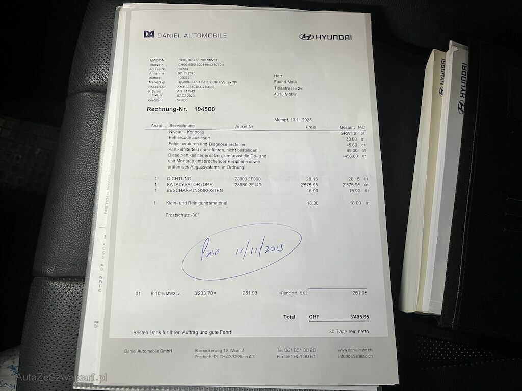 | Information | Keine Gewähr auf die Angaben der Sonder- und Serienausstattung / keine mechanische Prüfung. Fahrzeug wurde unzerlegt expertisiert / keine Haftung für allfällige, nach Demontage bekanntwerdenden Mängel. Fahrzeugbereifung und Ausstattung gemäss Fotos / Fahrzeugkauf auf eigenes Risiko ab Platz ohne Nachwährschaft. Keine technische Prüfung (Werkstatttest) vorgenommen Diverse Schäden an Karosserie/Lack. 8-fach bereift. Fahrzeug ab Platz, ohne Garantie und Aufbereitung. - diverse Kratzer und Dellen - DPF ersetzt November 2025 |