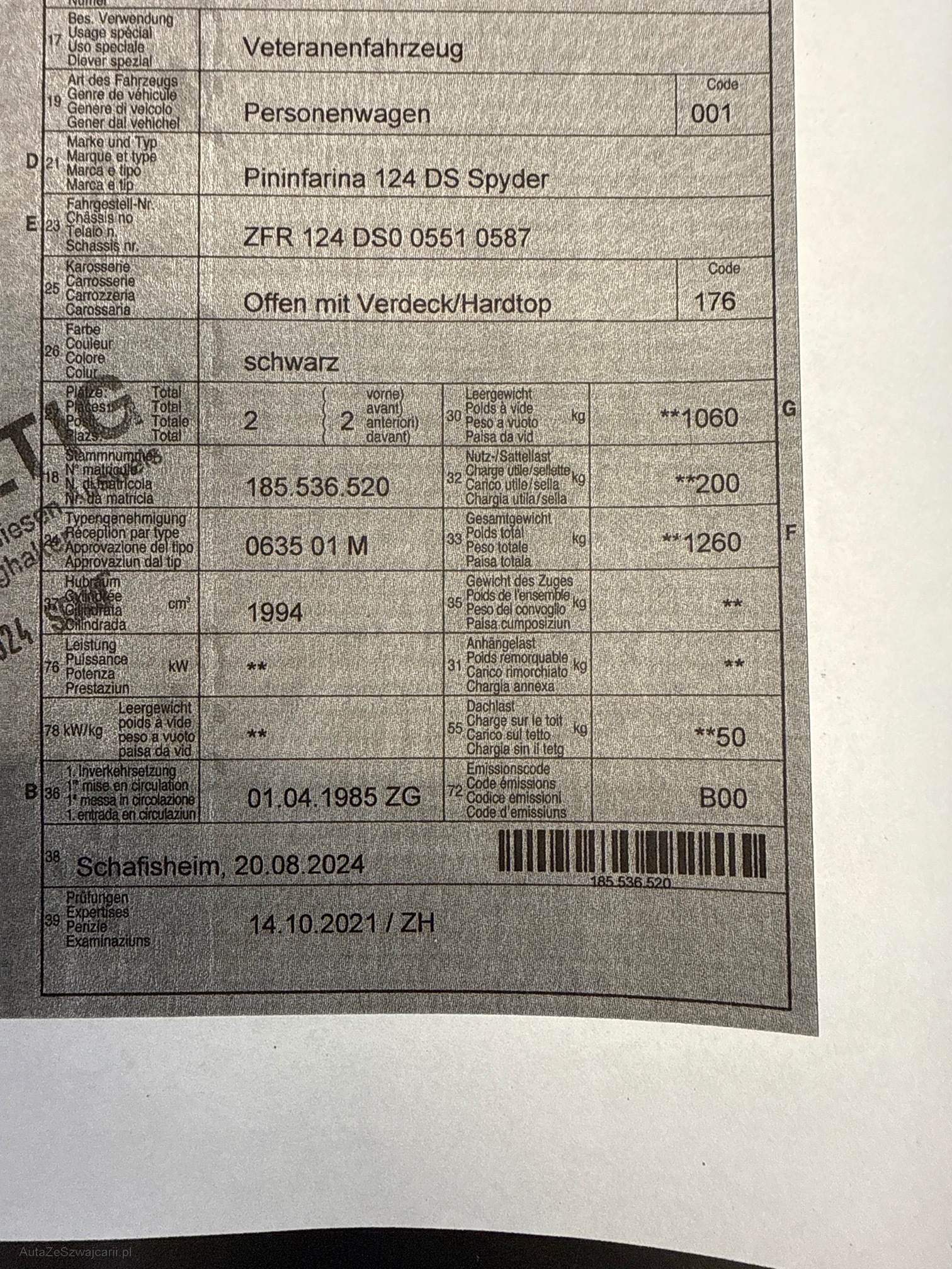 | Kommentar | Pinifarina, als Veteran vorgeführt, einer der letzten die gebaut wurden |