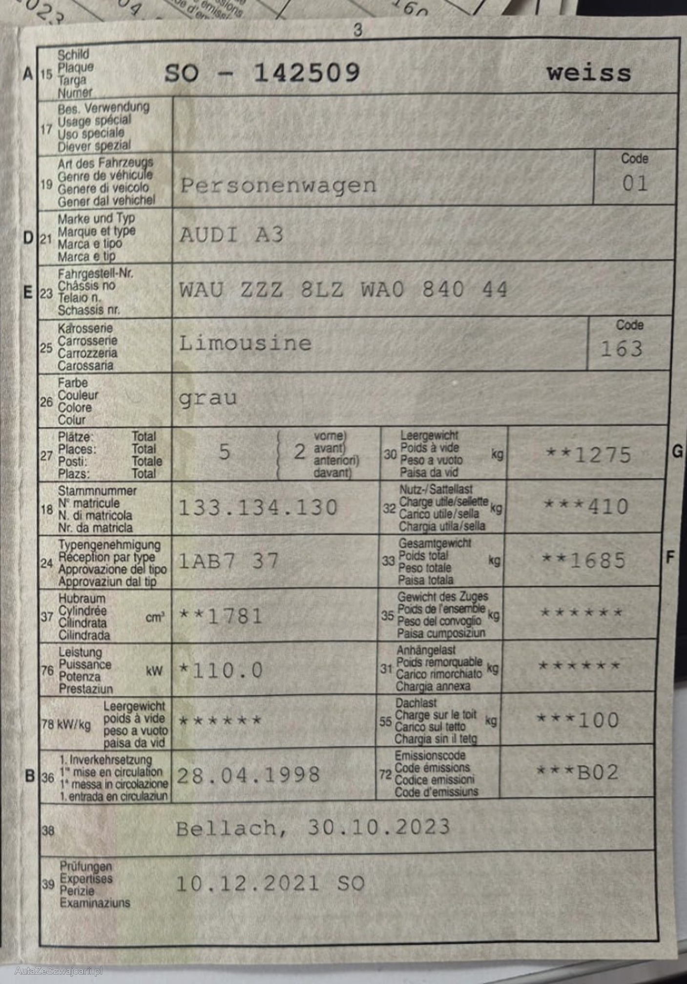 | Letzte Inspektion | 2021-12-01 |