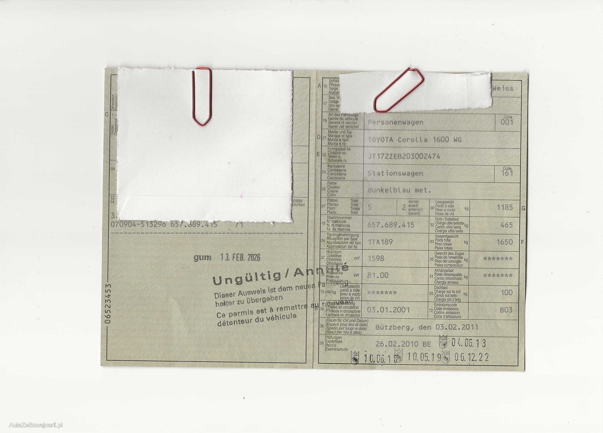 | Kommentar | Diverse Kleien Beulen und Kratzer Fahrwerksfeder hinten links unterste Windung Gebrochen Radlauf Rostansatz ( Siehe Foto`s) 8-fach gut Bereift Sommer Auf Alufelgen Winter mit Stahlfelgen Fensterbedieneinheit bei der Fahrertüre vorne lose |