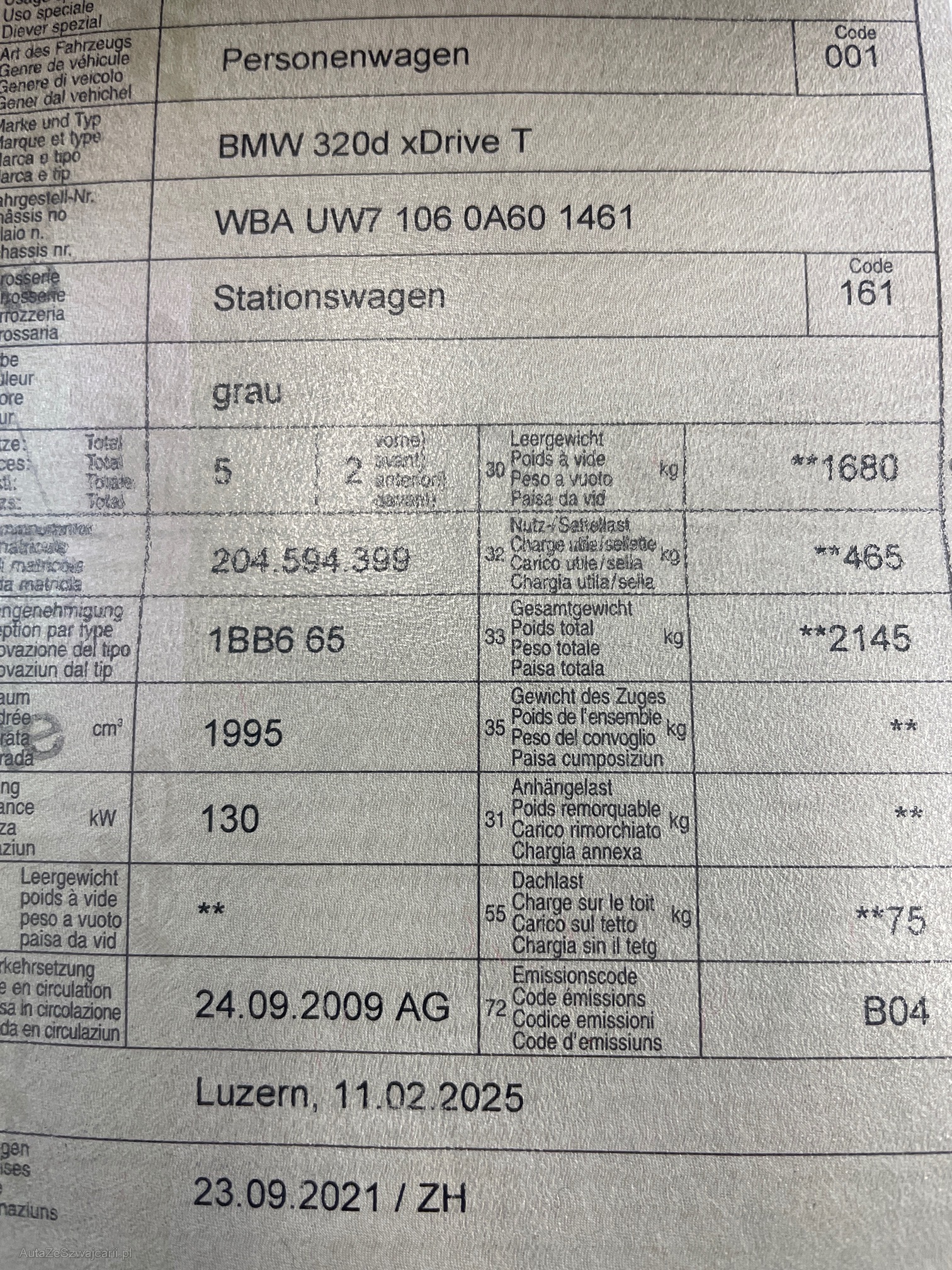 | Kommentar | Feder vorne durchgebrochen, Fahrzeug ist nicht fahrbar. Bis zum Federbruch fuhr das Auto einwandfrei. Auf weitere Mängel / Schäden nicht geprüft, Schäden / Mängel siehe Bilder. Am Fahrzeug wurde kein Werkstatttest durchgeführt (für sichtbare oder nicht sichtbare Mängel wird keine Haftung übernommen). Verkauf ab Platz, ohne Garantie. Wandelung und Minderung sind ausgeschlossen. |