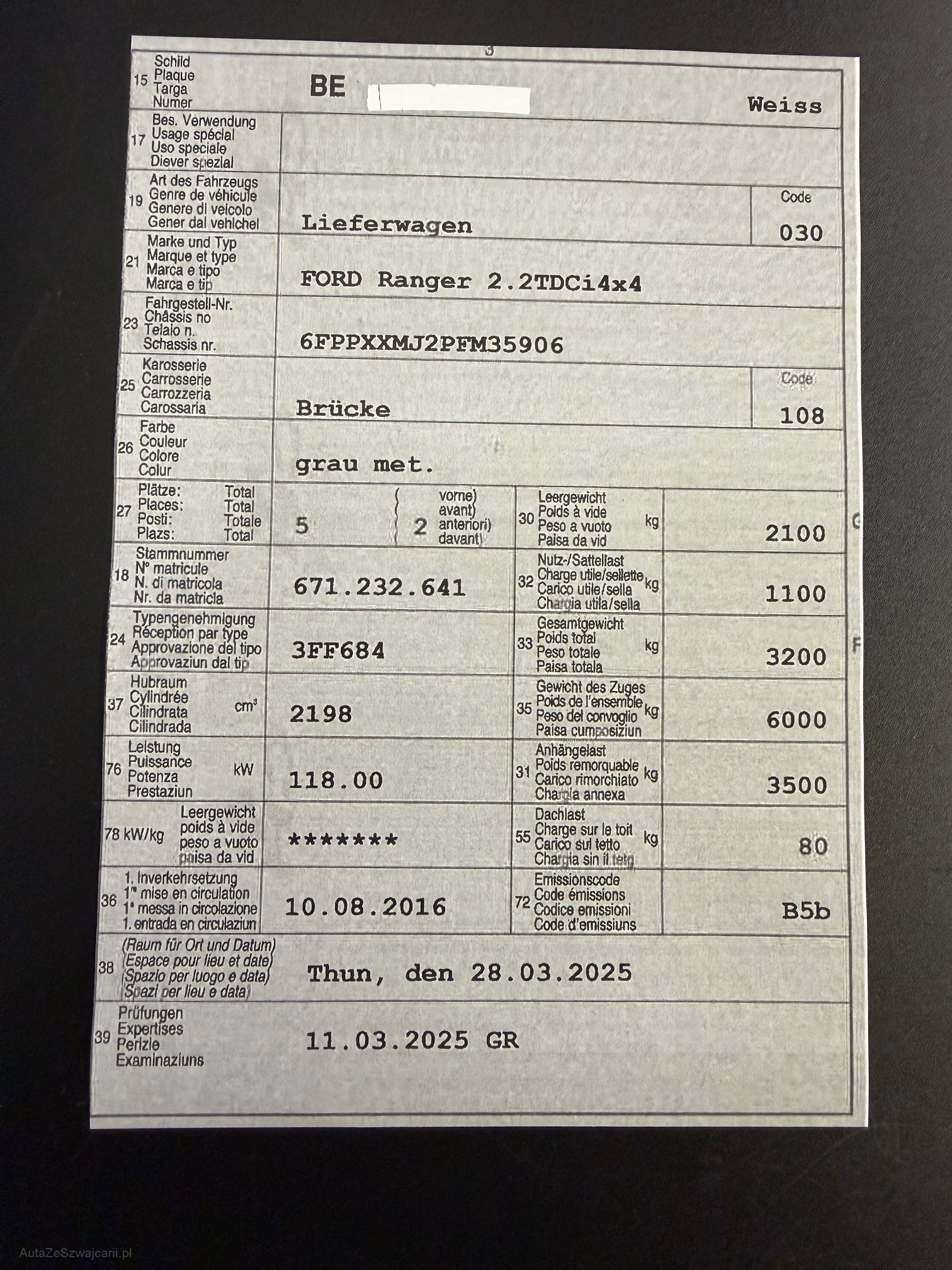 | Kommentar | Partikelfilter bei MFK neu Werte i.O. Winterpneus neu Normale Gebrauchsspuren |