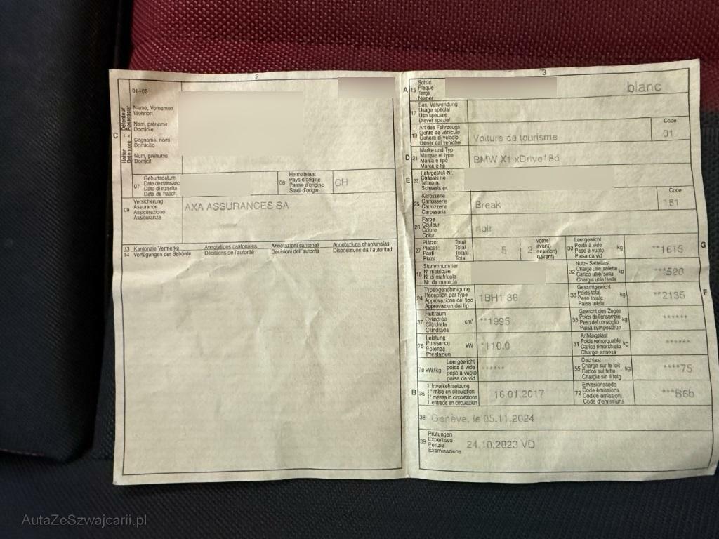 | Sonderausstattung | Lichtpaket, Aussenspiegelpaket, Head-Up Display, Remote Services, Fahrwerk: Variable Sportlenkung Für sportliches Fahren gesteigertes Handling und agilere Ausweichmanöver, Parklenkassistent, Innenspiegel automatisch abblendbar, Metallic-Lackierung, Dachreling schwarz, Rücksitze längsverstellbar, Real Time Traffic Information, LED Scheinwerfer mit erweiterten Umfängen, Navigationssystem PLUS, Tempomat mit Bremsfunktion, Sitze: Vordersitze heizbar, Media: Komforttelefonie mit erweiterter Smartphone-Anbindung, Räder: Bereifung mit Notlaufeigenschaften, Heckklappe automatisch, Komfortzugang, ConnectedDrive Services, Klimatisierungsautomatik, Getriebe: 8-Stufen-Sportautomat Steptronic, BMW Garantie: 3 Jahre oder 100'000 km Gratis-Service: 10 Jahre oder 100'000 km (ab 1. Inv.) |