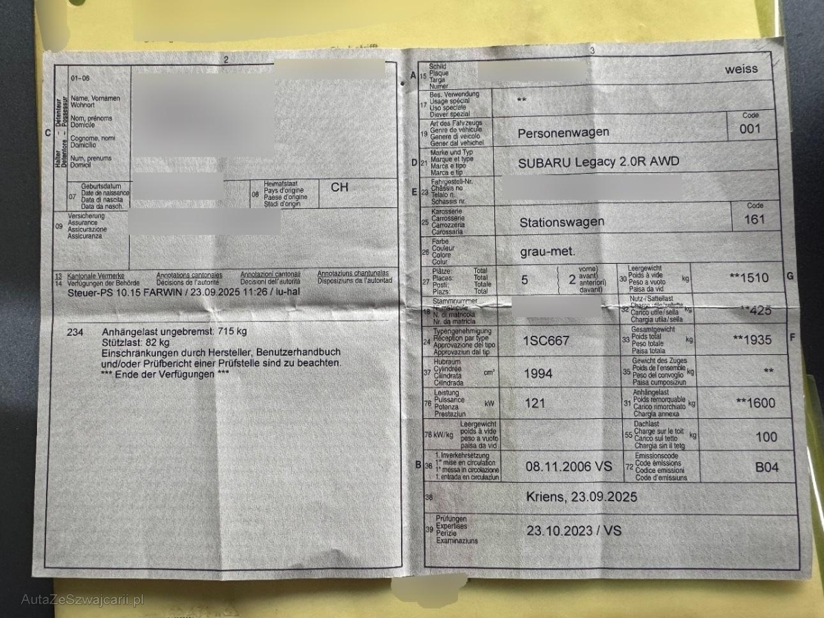 | Fahrzeugausweis | Vorhanden |
