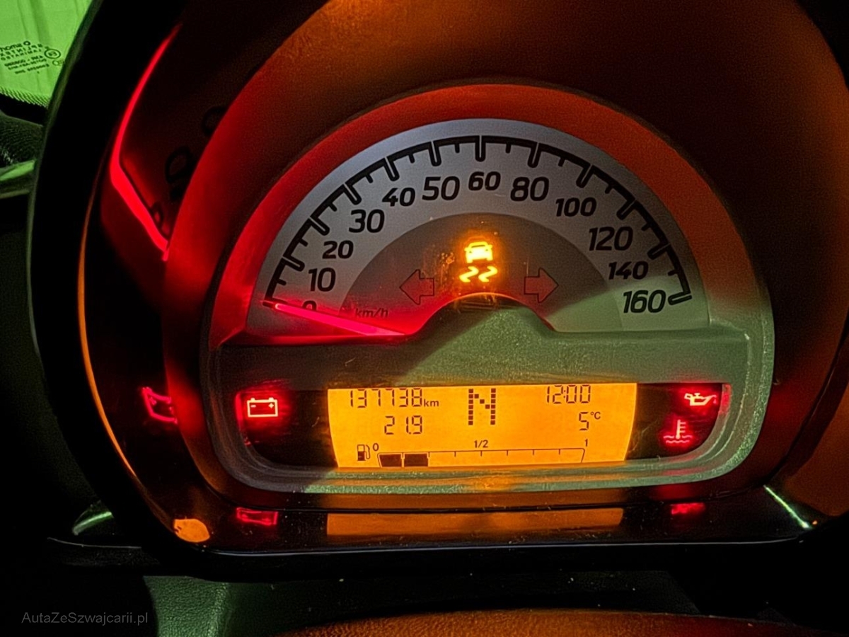 | Serienausstattung | Airbag: Airbag Fahrer und Beifahrer, Aussentemperaturanzeige, Sicherheitszelle in schwarz, Wassertemperaturanzeige, Steckdose, Uni-Lackierung, Wegfahrsperre elektronisch, Katalysator geregelt, Beifahrersitz-Rückenlehne umklappbar, Make up-Spiegel rechts, Antiblockiersystem (ABS), Halogenscheinwerfer, Stoff-Ausstattung, Stahlräder, Tageskilometerzähler, Bremsassistent (BAS), Scheibenwischer vorne mit Intervall, Gurtstraffer vorne, Abschliessbares Handschuhfach, Leuchtweitenregulierung von innen, Anfahrassistent, Tankdeckel-Entriegelung von innen, Heckscheiben-Wisch-/Waschanlage mit, Elektronisches Stabilitäts-Programm (ESP), Heckscheibenheizung, Weisse Blinkleuchten, Wartungsintervall-Anzeige, Drittes Bremslicht, Zentralverriegelung mit Fernbedienung, Ablagefach unter dem Beifahrersitz, Kofferraum-Entriegelung von innen, Multifunktionsanzeige, Licht: Nebelschlussleuchte, Aussenspiegel von innen verstellbar, 5-Gang-Automat Softouch, Ablagefach |