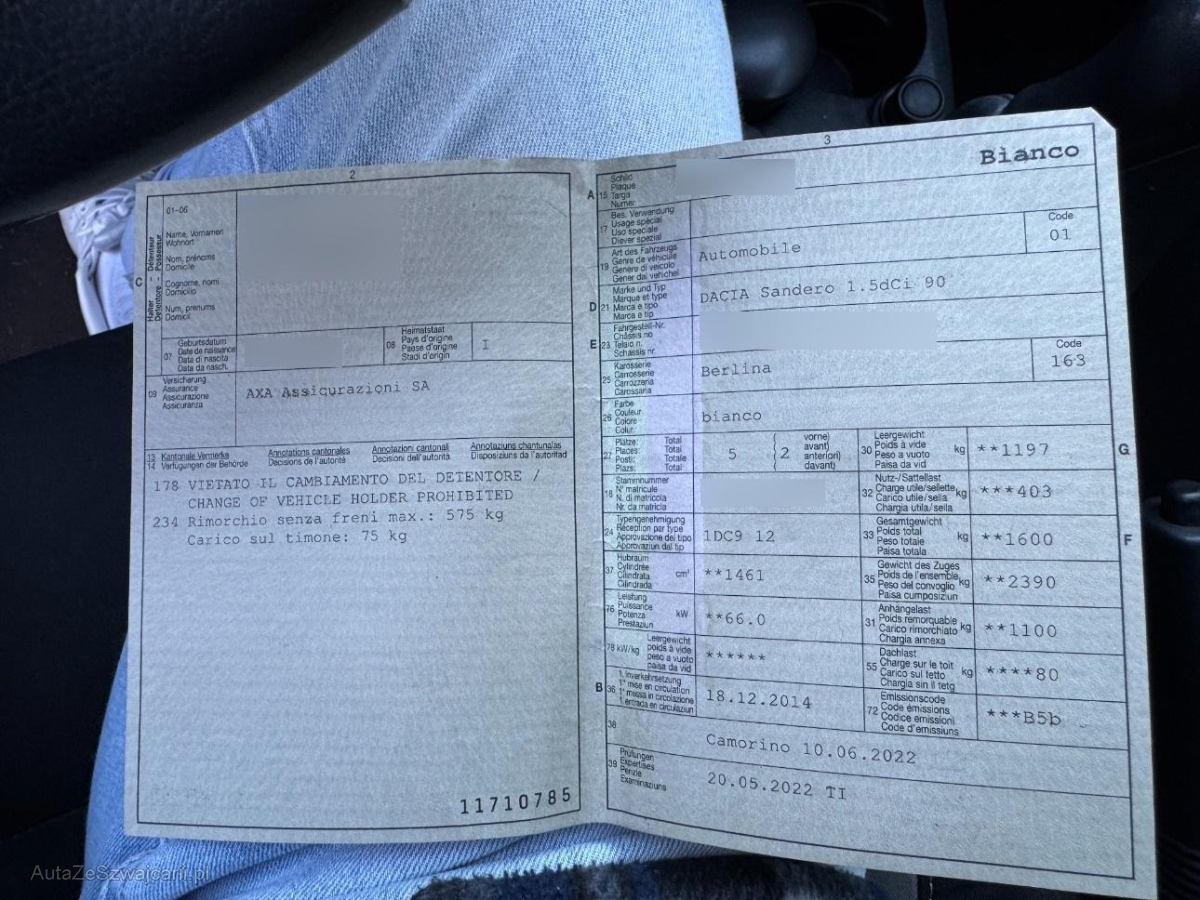 | Fahrzeugausweis | Vorhanden |