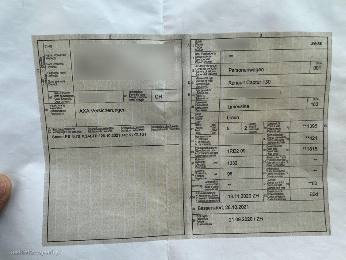 | Fahrzeugausweis | Vorhanden |