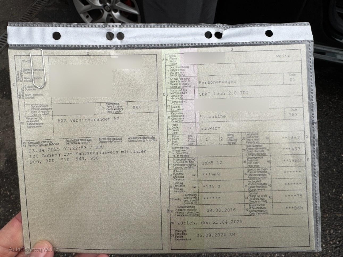 | Fahrzeugausweis | Vorhanden |