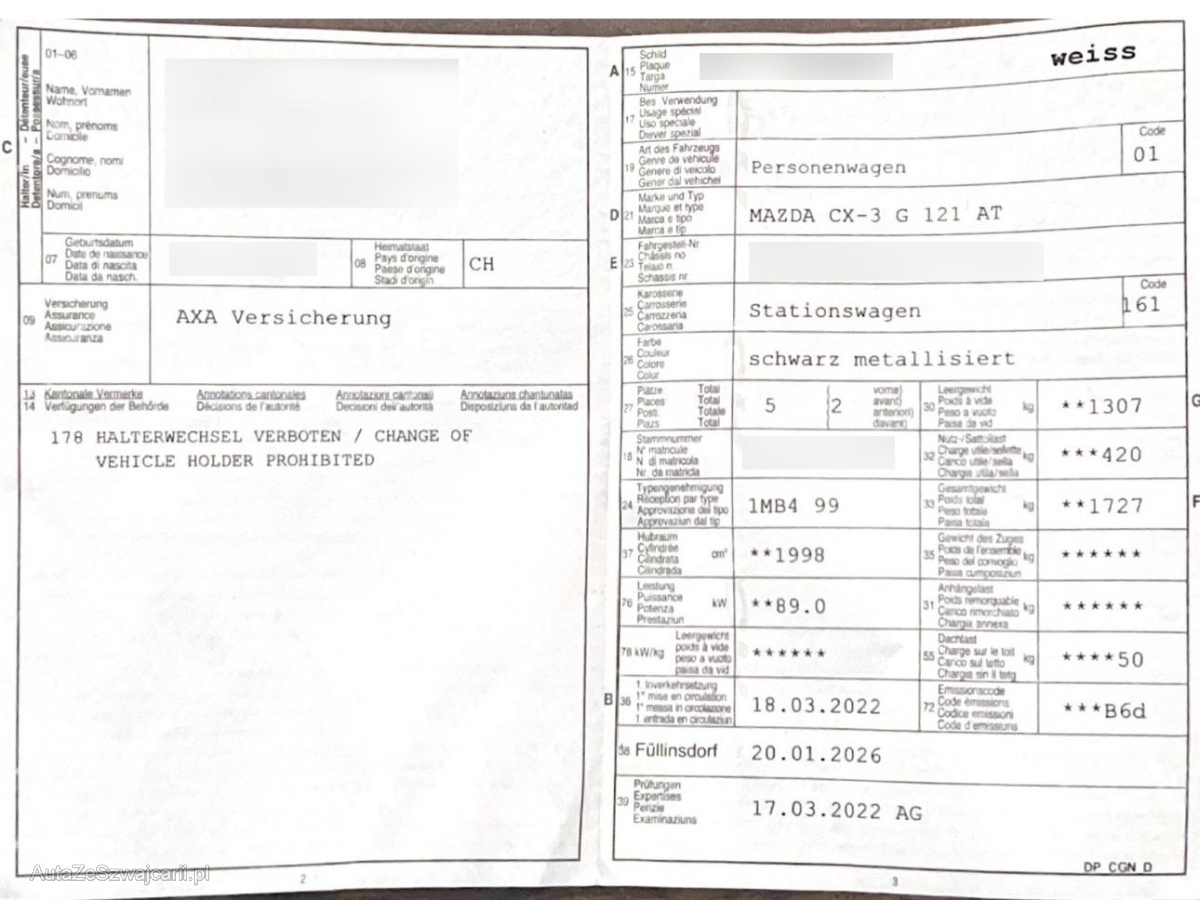 | Fahrzeugausweis | Vorhanden |