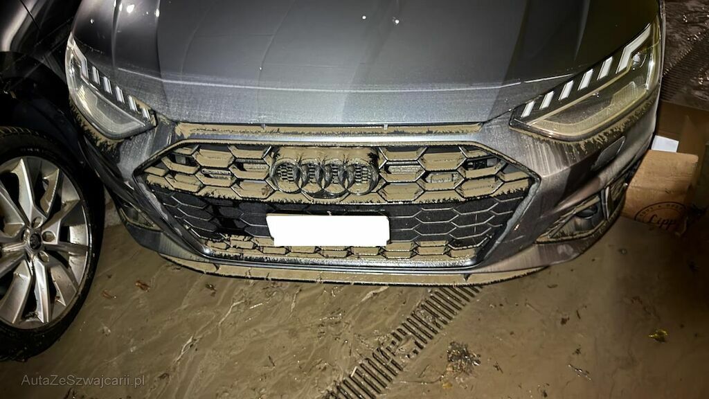 Das Fahrzeug stand in einer Tiefgarage, die durch schlammiges Wasser überflutet wurde.