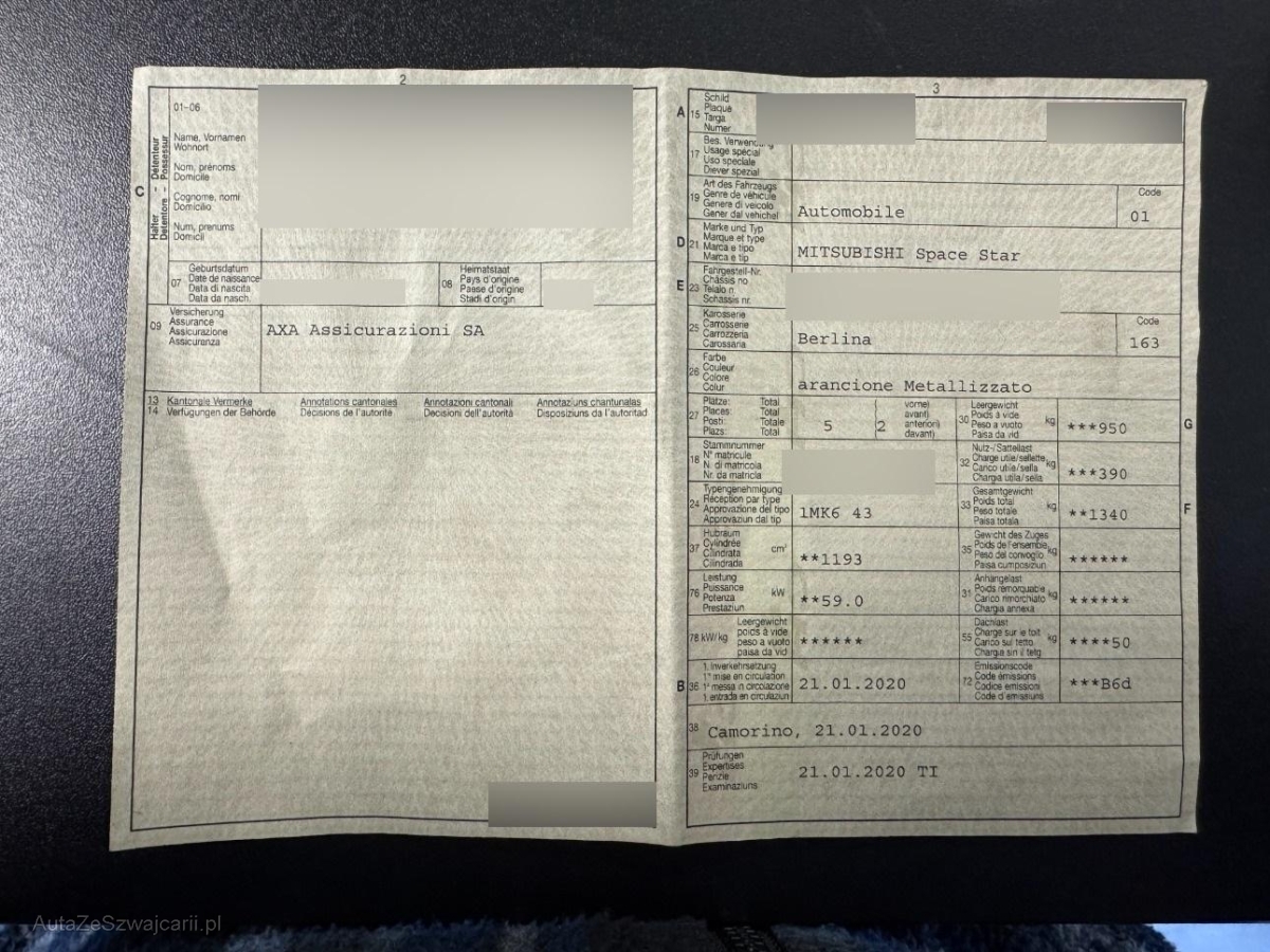 | Fahrzeugausweis | Vorhanden |