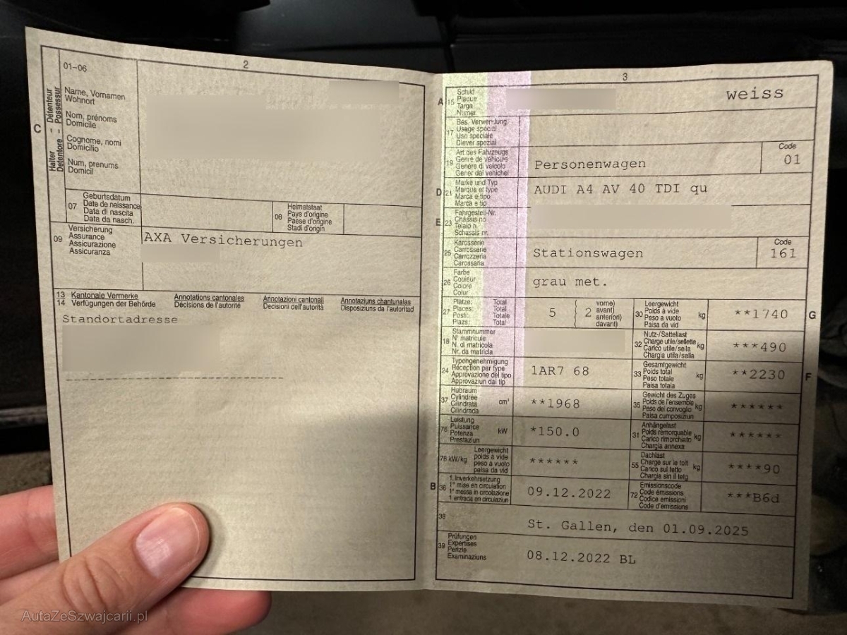 | Fahrzeugausweis | Vorhanden |