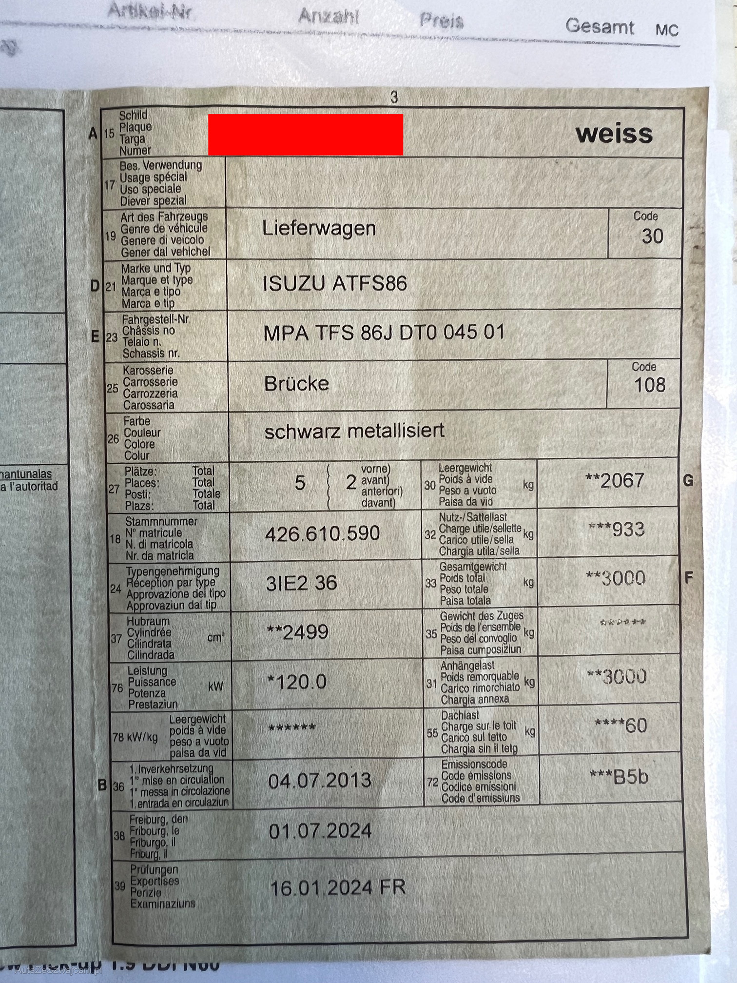| Kommentar | Carrosserie viele Beschädigungen siehe Fotos Trapez VR ausgeschlagen, Scheinwerfer und Nebellampen vorne vergilbt (Trüb) Verkauf ohne Garantie, Wandelungen und Minderungen sind ausgeschlossen |