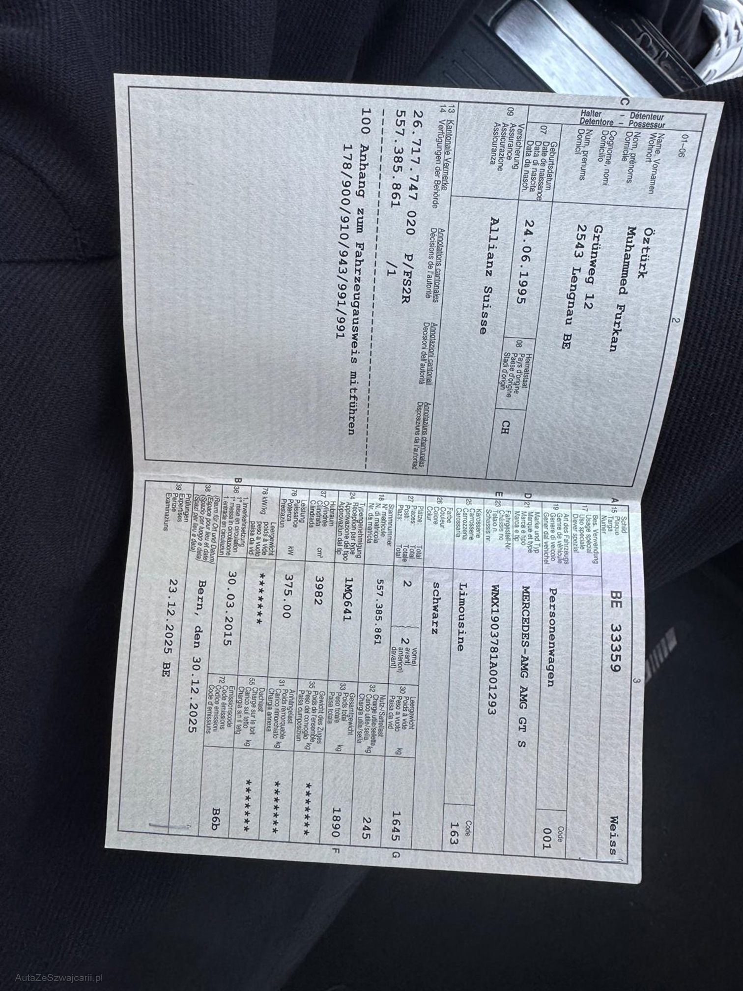 | Kommentar | Es wurde kein FZ Check gemacht Ab Platz ohne Garantie |