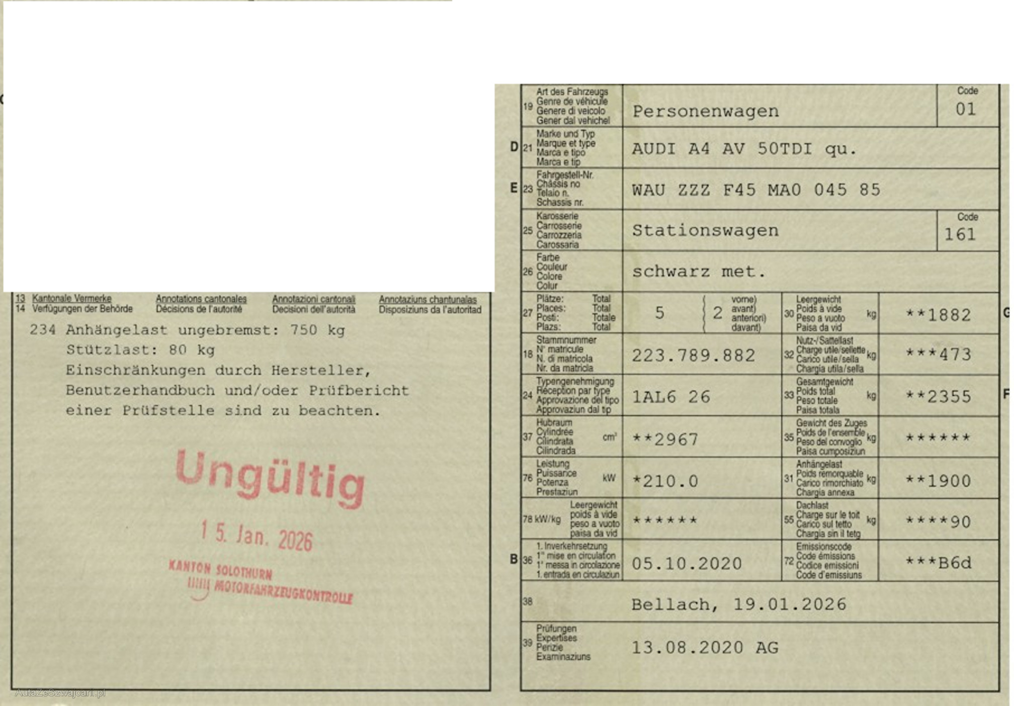 | Kommentar | Unsere Fahrzeuge wurden keiner Prüfung unterzogen, Fahrzeugkauf auf eigenes Risiko ab Platz ohne Nachwährschaft. Das Gewährleisten für Sachmängel wird weggegangen. Fahrzeugbereifung, Fahrzeugzustand und Ausstattung gemäss Bildern. |