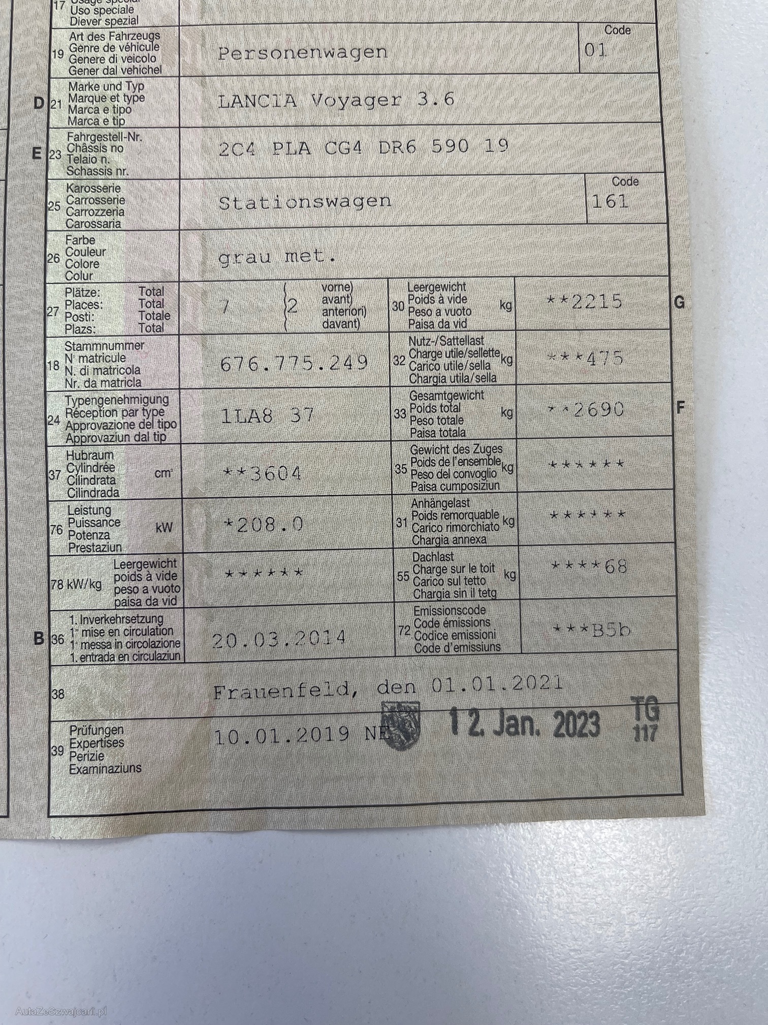 | Kommentar | Fahrzeug ab Platz und ohne Garantie. Es wurde keine Werkstattprüfung durchgeführt. |