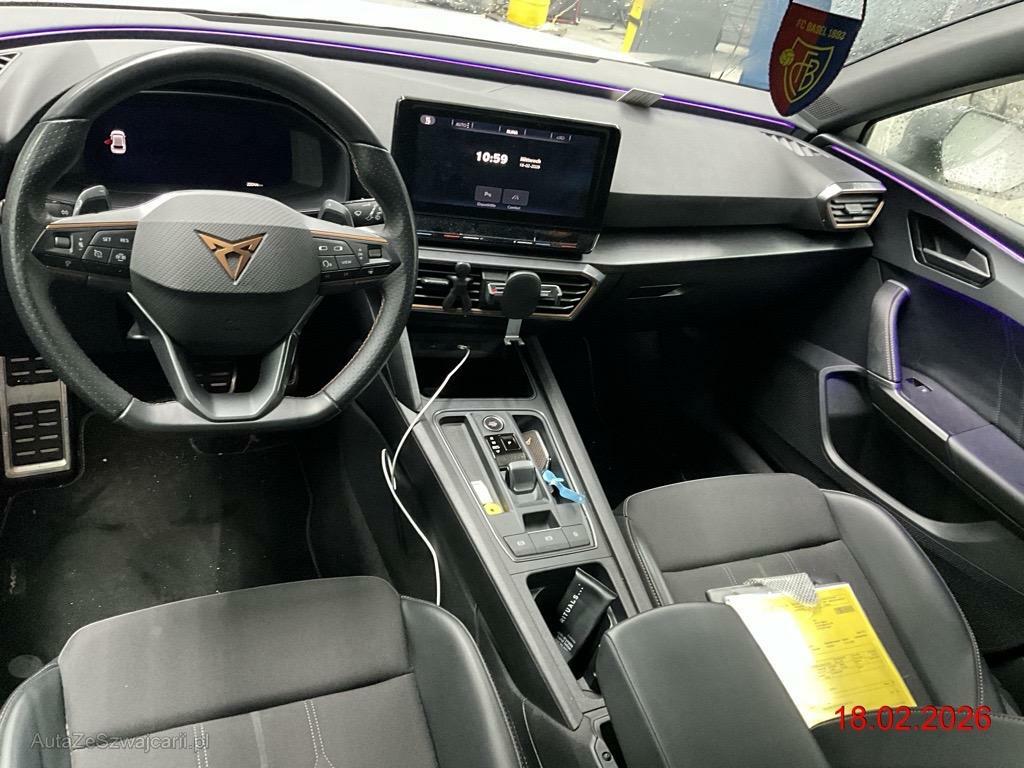 | Serienausstattung | ABS, EBV elektronische Bremskraft-verteilung, Abgedunkelte Scheiben ab B-Säule hinten, Airbag: Airbag Beifahrer deaktivierbar, Airbag: Airbag Fahrer und Beifahrer, Airbag: Kopfairbags vorne und hinten, Airbag: Seitenairbags für Fahrer und Beifahrer, Airbag: Zentral Airbag, Assist: Einparkhilfe hinten, Assist: Elektronische Parkbremse mit Auto Hold Funktion, Assist: Multifunktionskamera, Assist: Multikollisionsbremse, Assist: PreCrash Sicherheitssystem, Assist: Tempomat, Assist: Tiredness detection (Müdigkeitserkennung), Assist: Traction Control (TCS), deaktivierbar, Aussenspiegel elektrisch einstell-, beheiz- und einklappbar mit Beifahrerabsenkfunktion, Aussenspiegel in Cosmo Grey, Türgriffe in Wagenfarbe, Aussenspiegel mit LED-Blinker, Bremszangen vorne und hinten in Schwarz, CUPRA Drive Profile mit ", CUPRA-Heckspoiler, Dachhimmel schwarz, Dekor: Dekorblenden in Copper, Dekor: Schalthebelknopf in Leder, Dokumentenablage unter dem linken Vordersitz, Dreipunkt-Automatiksicherheitsgurte auf allen Plätzen, ESC mit EBA, DSR und Reifendruckkontrolle, Elektrische Fensterheber vorne und hinten mit Komfortschaltung und Einklemmschutz, Fahrwerk: Adaptive Fahrwerksregelung DCC, Fahrwerk: Progressivlenkung, Fahrwerk: Vorderachs-Differenzialsperre, Full Digital Cockpit, Fussmatten vorne und hinten, Garantie: 2 Jahre ohne Kilometerbegrenzung (ab 1. Inv.), Getriebe: Sequentielles 6-Gang-Getriebe mit Automatikfunktion, Heckscheiben-Wisch-/Waschanlage mit Intervall, Heckscheibenheizung, Innenspiegel automatisch abblendbar, Kindersitzverankerung ISOFIX (äussere Plätze hinten), Klima: 3-Zonen Climatronic, LED-Innenraumbeleuchtung mit Ambientebeleuchtung Wraparound, Lackierung: Uni-Lackierung, Ladekabel (Mode 3), Ladekabel für Haushaltssteckdose (Mode 2), Lenkrad: Beheizbares Ledermultifunktionslenkrad mit Schaltwippen, Licht- und Regensensor, Licht: Coming Leaving Home Funktion, Licht: Drittes Bremslicht, Licht: Durchgehende Full LED-Heckleuchten, Licht: LED-Heckleuchten mit dynamischem Blinklicht, Licht: LED-Nebelscheinwerfer mit Cornering-Funktion, Licht: LED-Scheinwerfer für Abblend- und Fernlicht, Licht: LED-Tagfahrlicht, Licht: Leuchtweitenregulierung, Media: 12", Media: 2 USB C Anschlüsse hinten und vorne, Media: 6 Lautsprecher, Media: CUPRA Connect Online Infotainment für Navigationssystem, Media: CUPRA Connect Remote &, Media: CUPRA Navigationssystem, Media: DAB+ (Digital Audio Broadcasting), Media: Kartenmaterial ''Europa'', Media: Mobiltelefon Freisprechanlage Bluetooth, Media: Sprachsteuerung, Mittelarmlehne vorne und hinten, Nebelschlussleuchte, Ottopartikelfilter, Parksensoren in Midnight Black, Pollenfilter (Staubfilter), Pyrotechnische Gurtstraffer und Gurtkraftbegrenzer, Räder: Alufelgen 8J x 19", Räder: Reifendruck-Kontrollanzeige, Räder: Reifenreparatur-Set (Tire Fit), Schlüsselloses Schliess- und Startsystem (KESSY), Servolenkung mit geschwindigkeitsabhängiger Lenkkraftunterstützung, Sicherheitsgurtkontrolle für alle Sitze, Sitze: 2 verstellbare Kopfstützen vorne und 3 hinten, Sitze: CUPRA Sport Schalensitze in ", Sitze: Dokumentenablage unter dem linken Vordersitz, Sitze: Geteilt abklappbare Rücksitzlehne 1/3 - 2/3, Sitze: Kindersitzverankerung ISOFIX hinten, Sitze: Sitzheizung für Vordersitze, getrennt regelbar, Sitze: Vordersitze höhenverstellbar, Sonnenblende Fahrer und Beifahrerseite mit beleuchtetem Spiegel, Stopp - Start- und Rekuperationssystem, Stossfänger in Sport-Optik mit Heckdiffusor in Wagenfarbe, Vollverzinkte Karosserie, Wegfahrsperre elektronisch, Wärmeschutzverglasung, Zentralverriegelung mit Funkfernbedienung, 2 Funkschlüssel, Zierleisten Seitenfenster in Schwarz Glanz, Zwei Abgasblenden in Kupfer |
